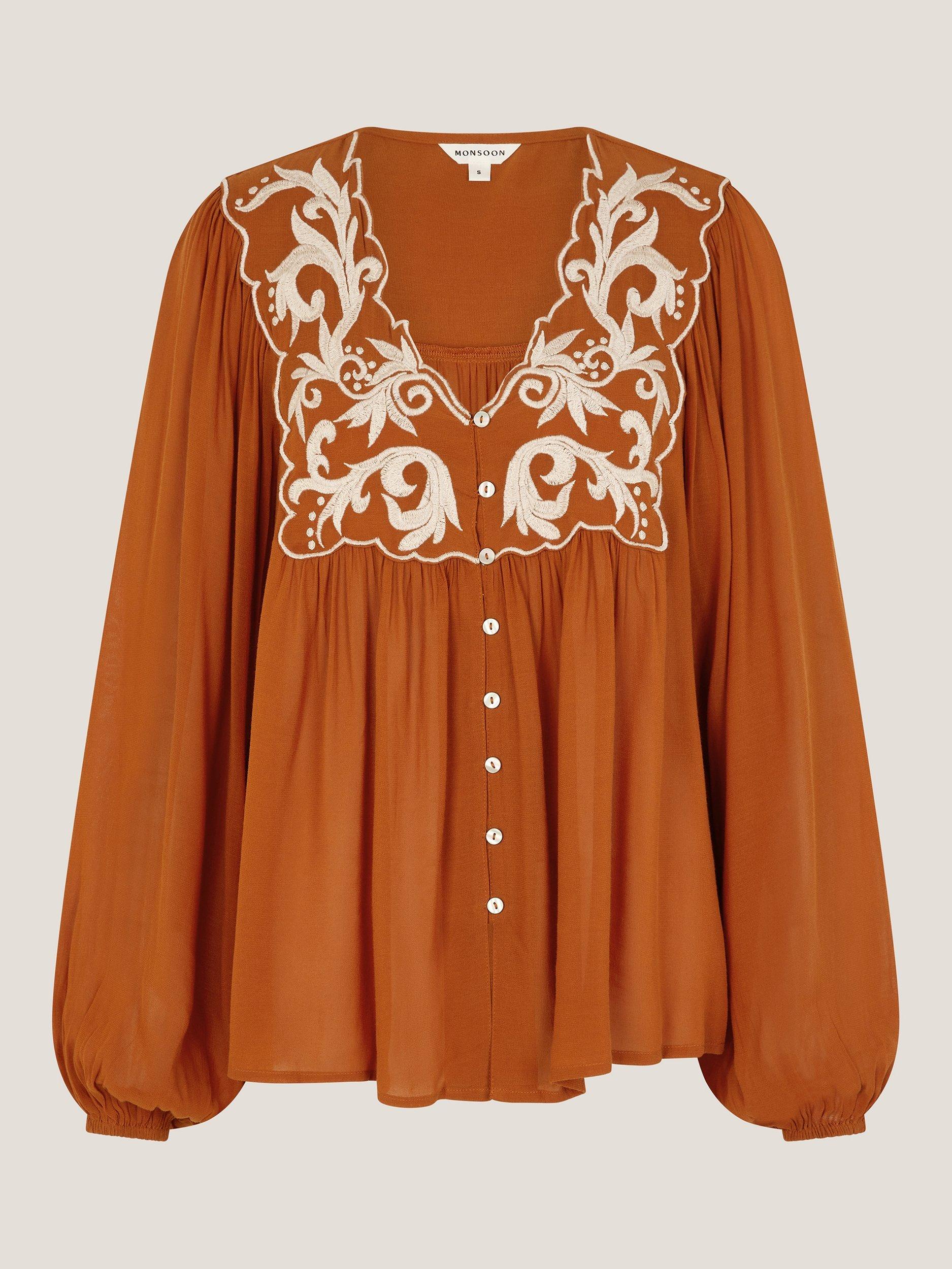 An effortless blouse from Monsoon. With a V-neck and long sleeves, it's detailed with pretty embroidery. A warm-weather essential you'll reach for daily.