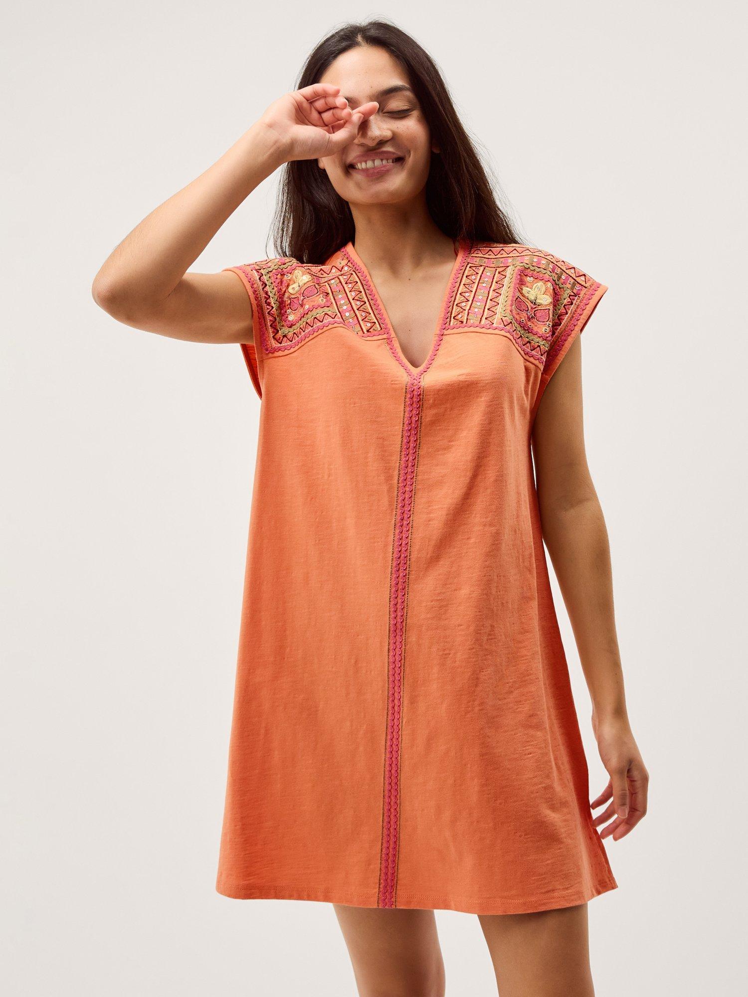 Step into any occasion with this cotton mini kaftan. Its abstract pattern and cap sleeves make sure you feel at ease while adding a clever twist to your style. Designed for those who want their outfit to spark conversation.