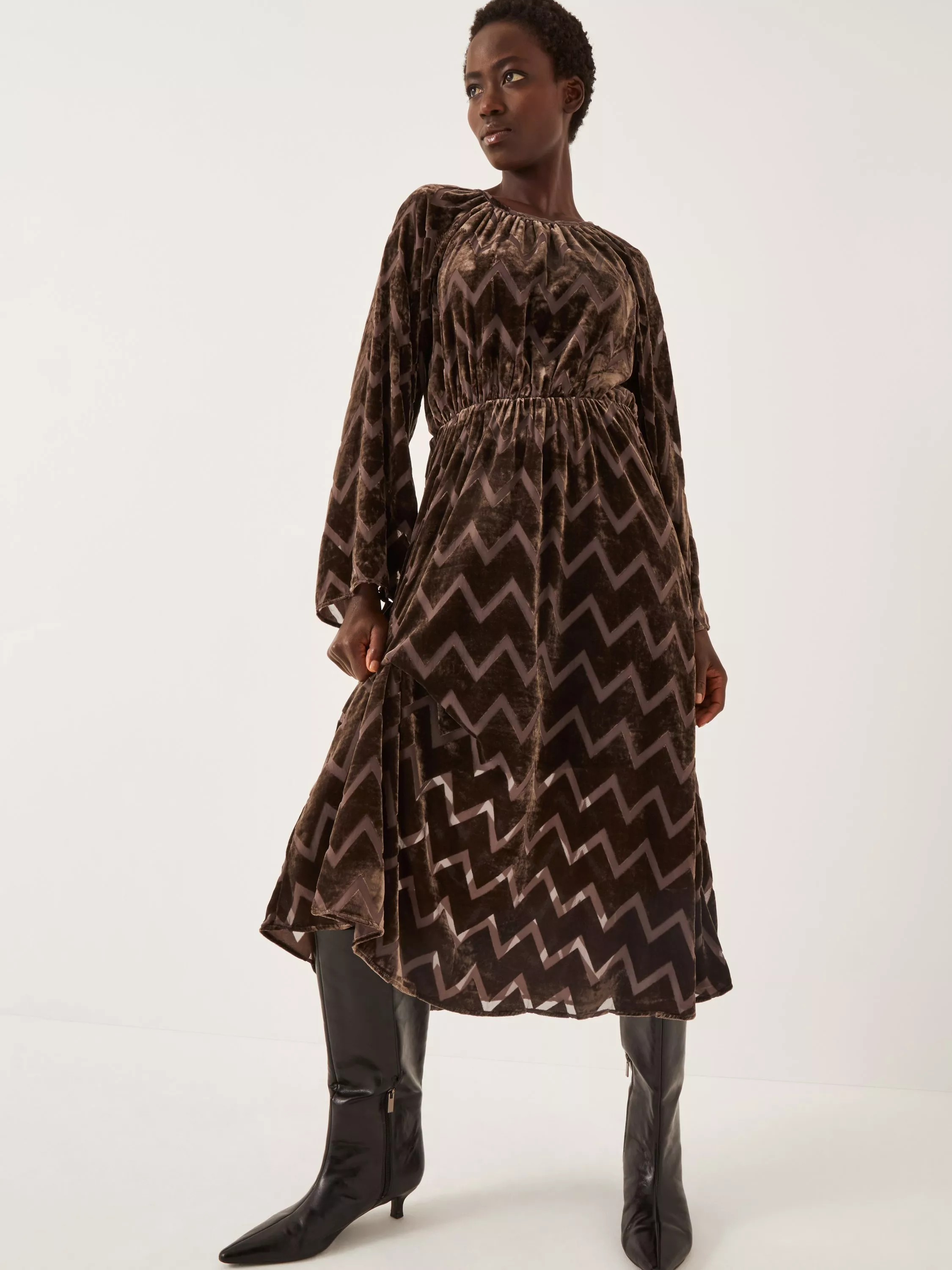 This velvet midi dress helps you stand out at evening events. Its A-line shape and geometric print flatter your form, while long sleeves and a round neck keep you comfortable.