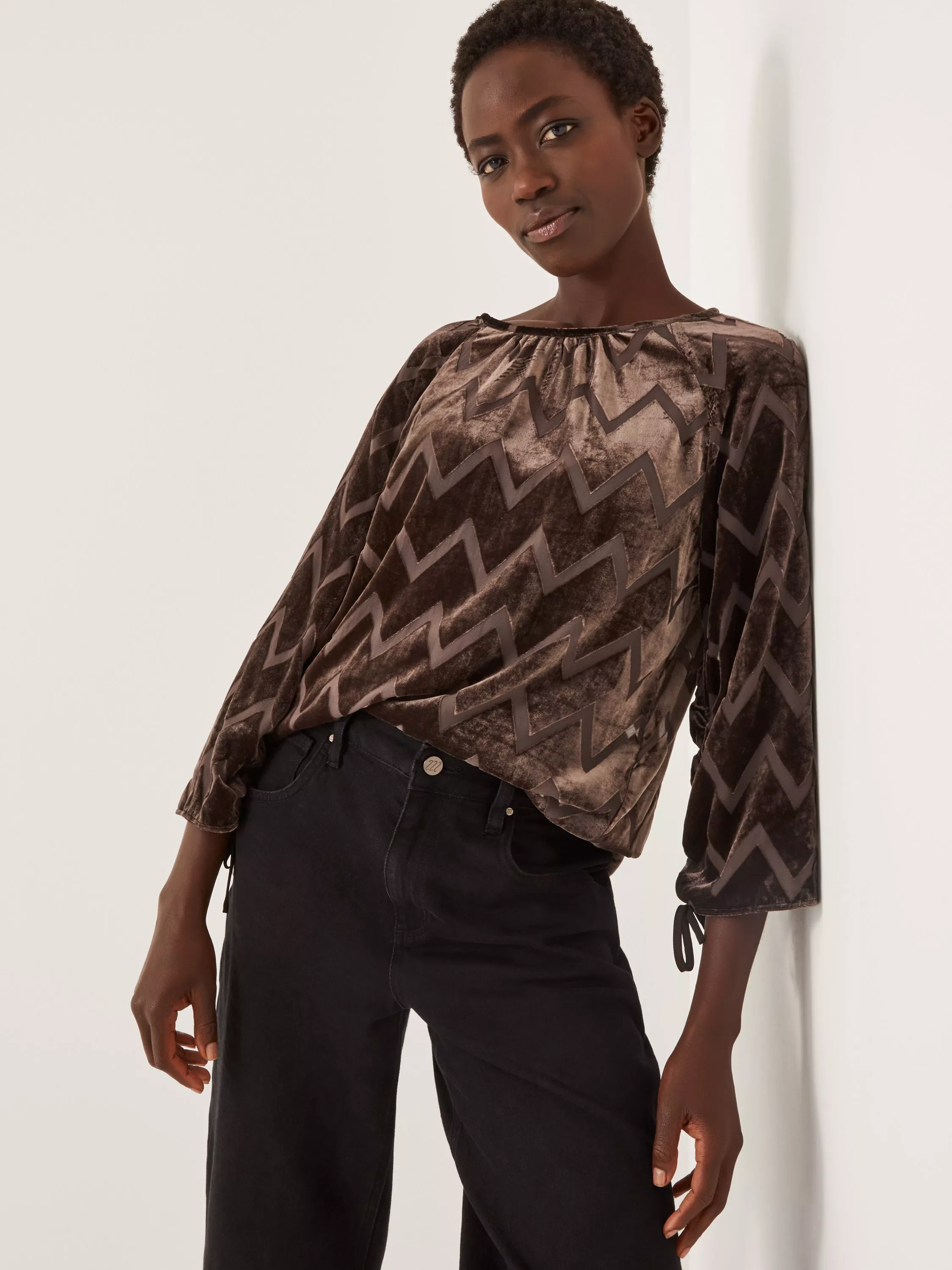 An effortless drawstring blouse from Monsoon. Featuring a gathered neck and three-quarter length sleeves, it's made in soft velvet with a geometric print. Casual, comfortable, and effortlessly chic.