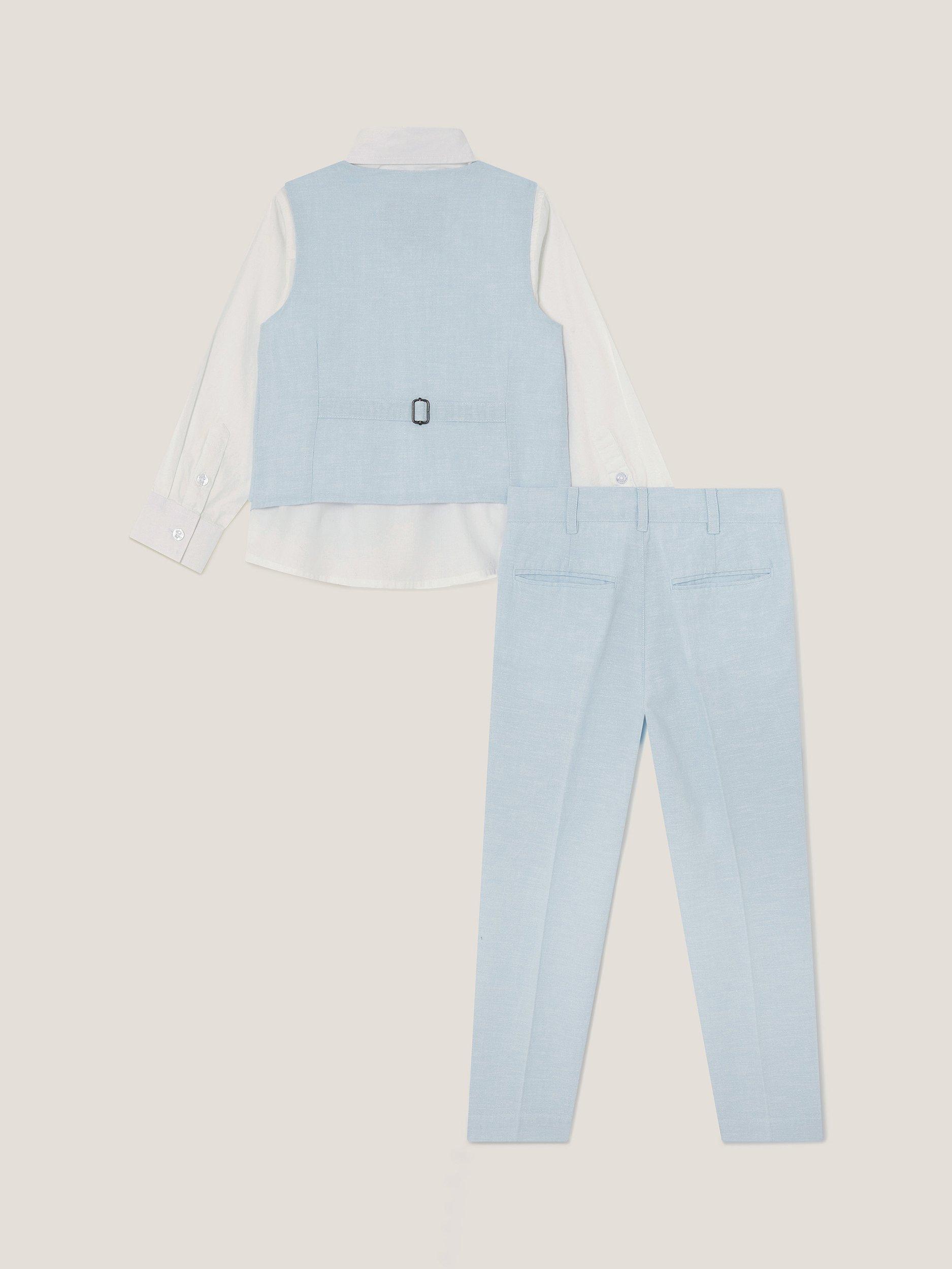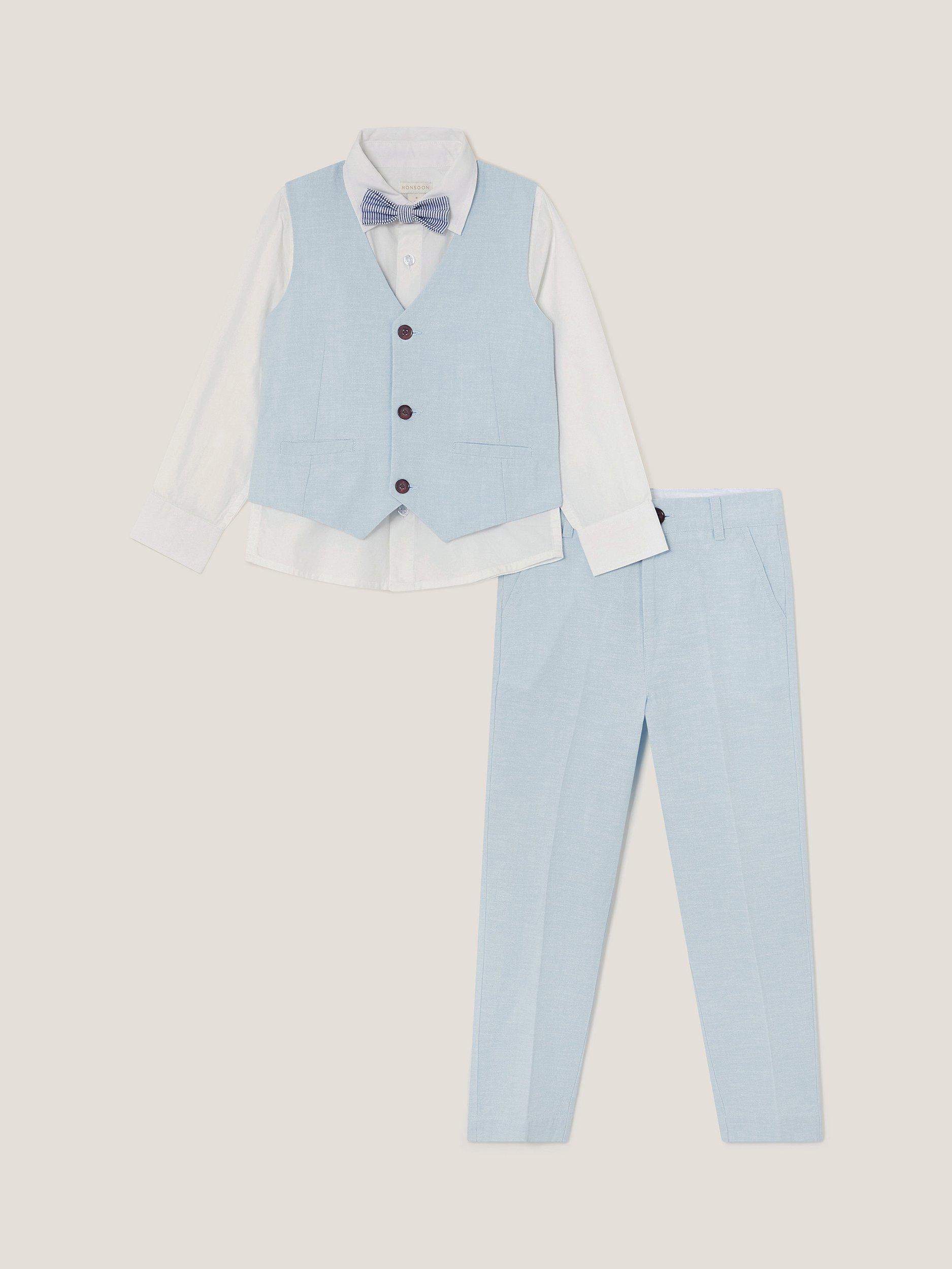 Featuring a long sleeve shirt, blue waistcoat and matching trousers, this set is the perfect outfit option for any special occasion in their social calendar. Oh, and don't forget the bow tie!