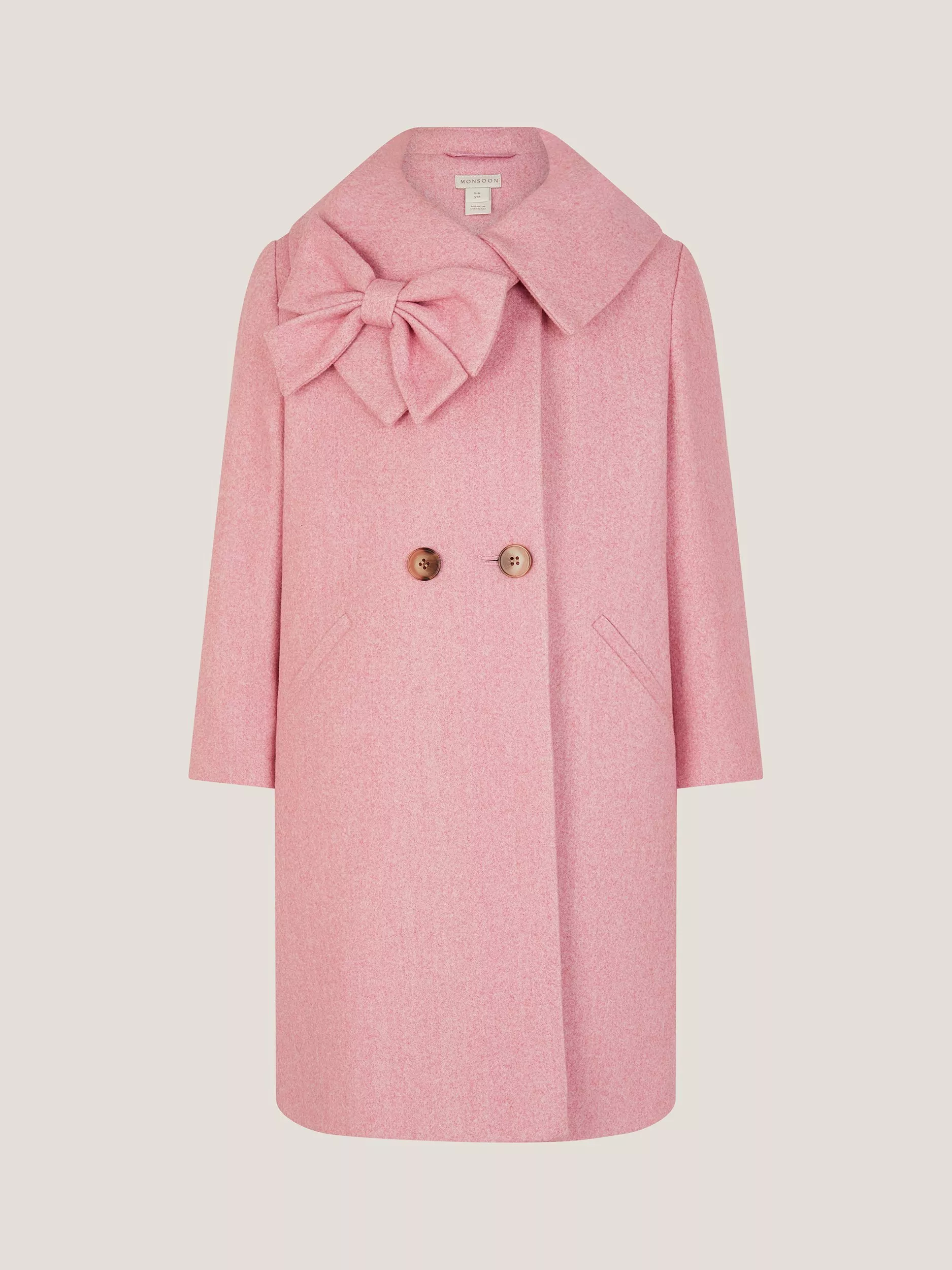 MonsoonKids' Asymmetric Bow Collar Coat, Pink