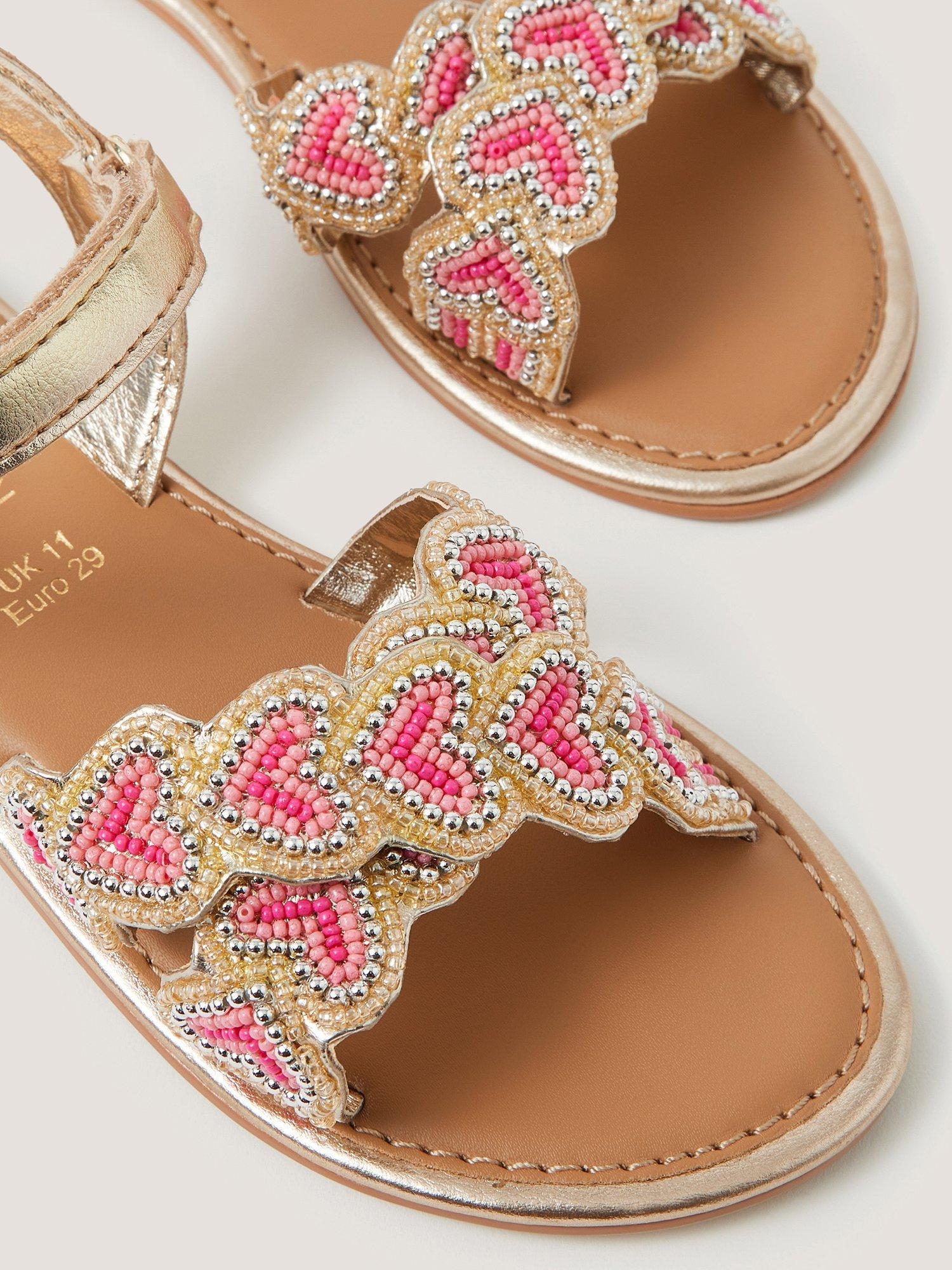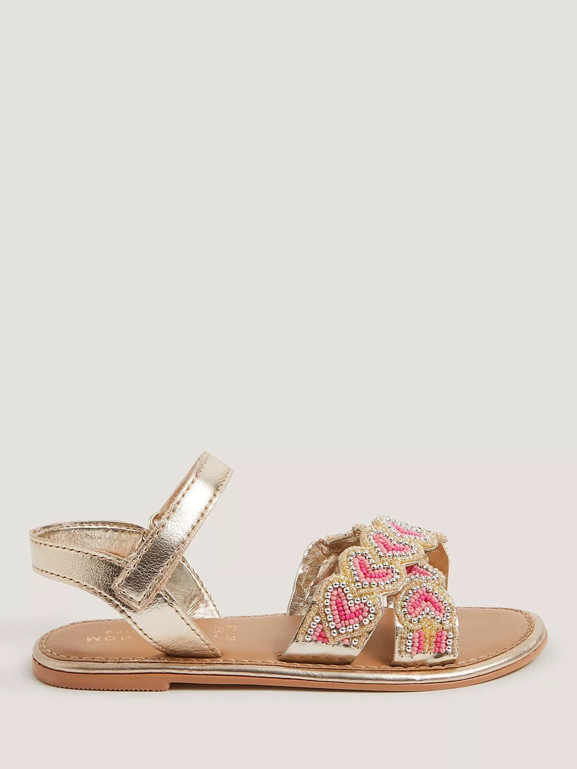 Designed in metallic gold, these sandals feature bead-embellished hearts on the cross-over straps. A fun pair for little ones who love summertime.