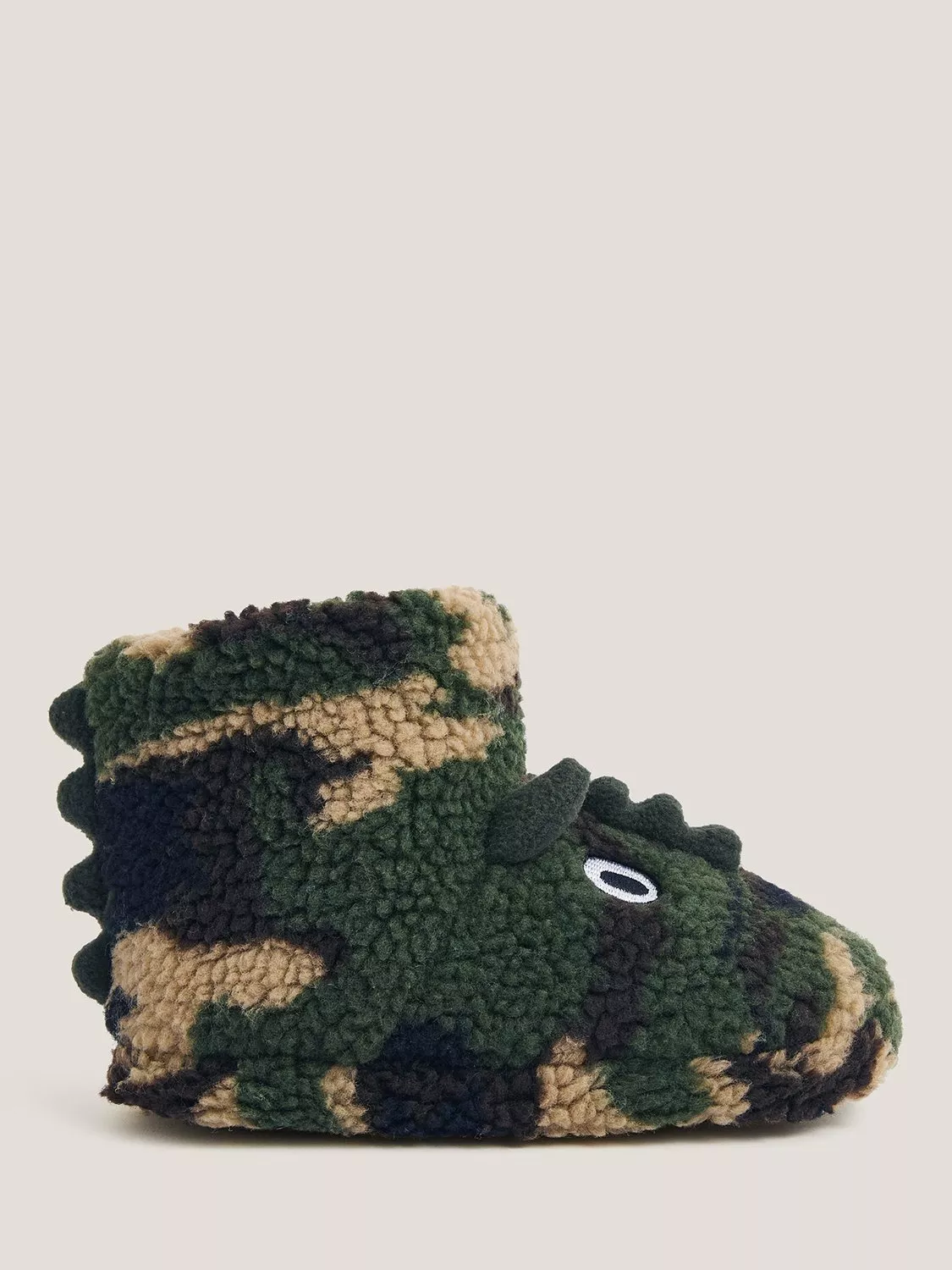 A cosy addition to their bedtime routine, these snuggly borg slipper boots are cloaked in a camouflage print with a spiky dinosaur design.