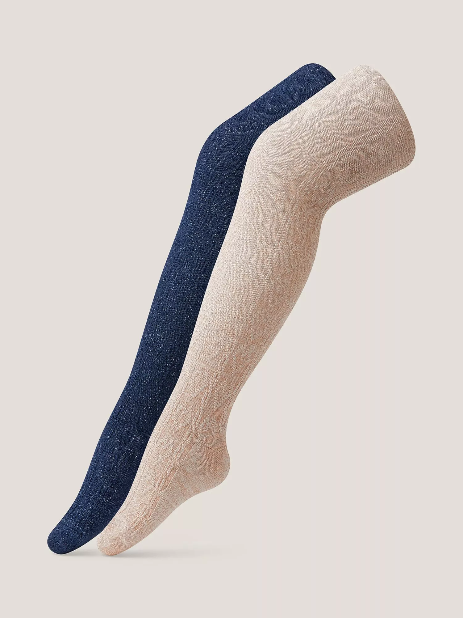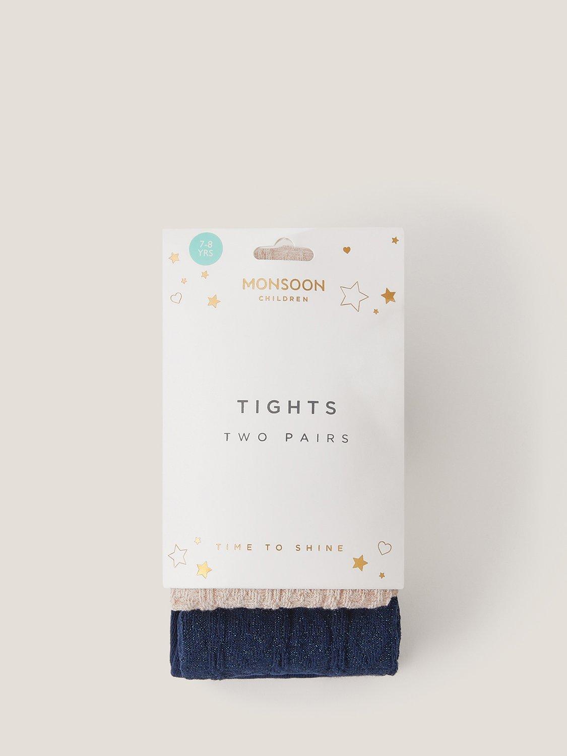 Stitched with a cable-knit pattern and heart motifs, these tights are a must for little ones who live in skirts and dresses. Two pairs included.