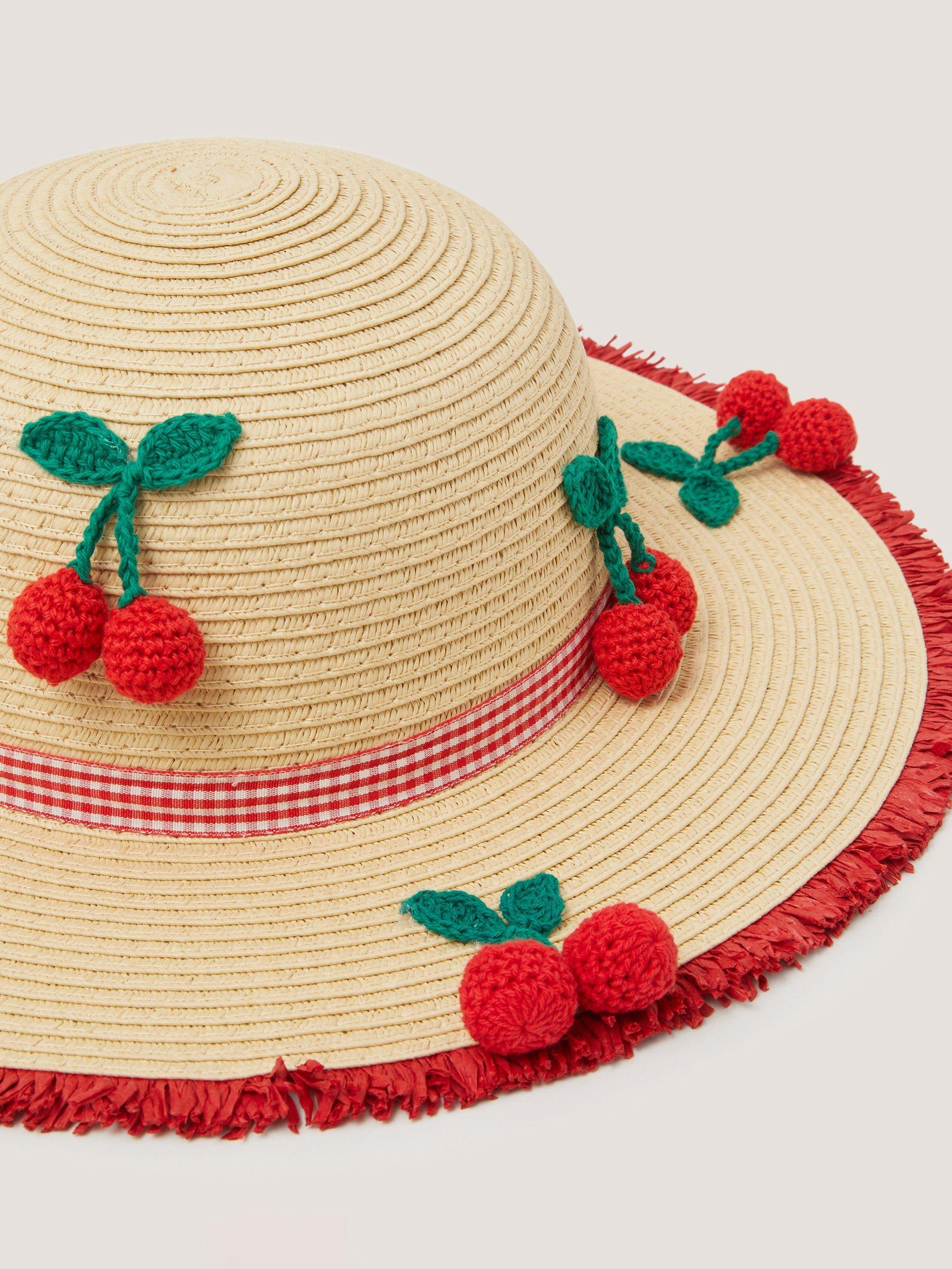 MonsoonKids' Cherry Straw Sun Hat, Natural