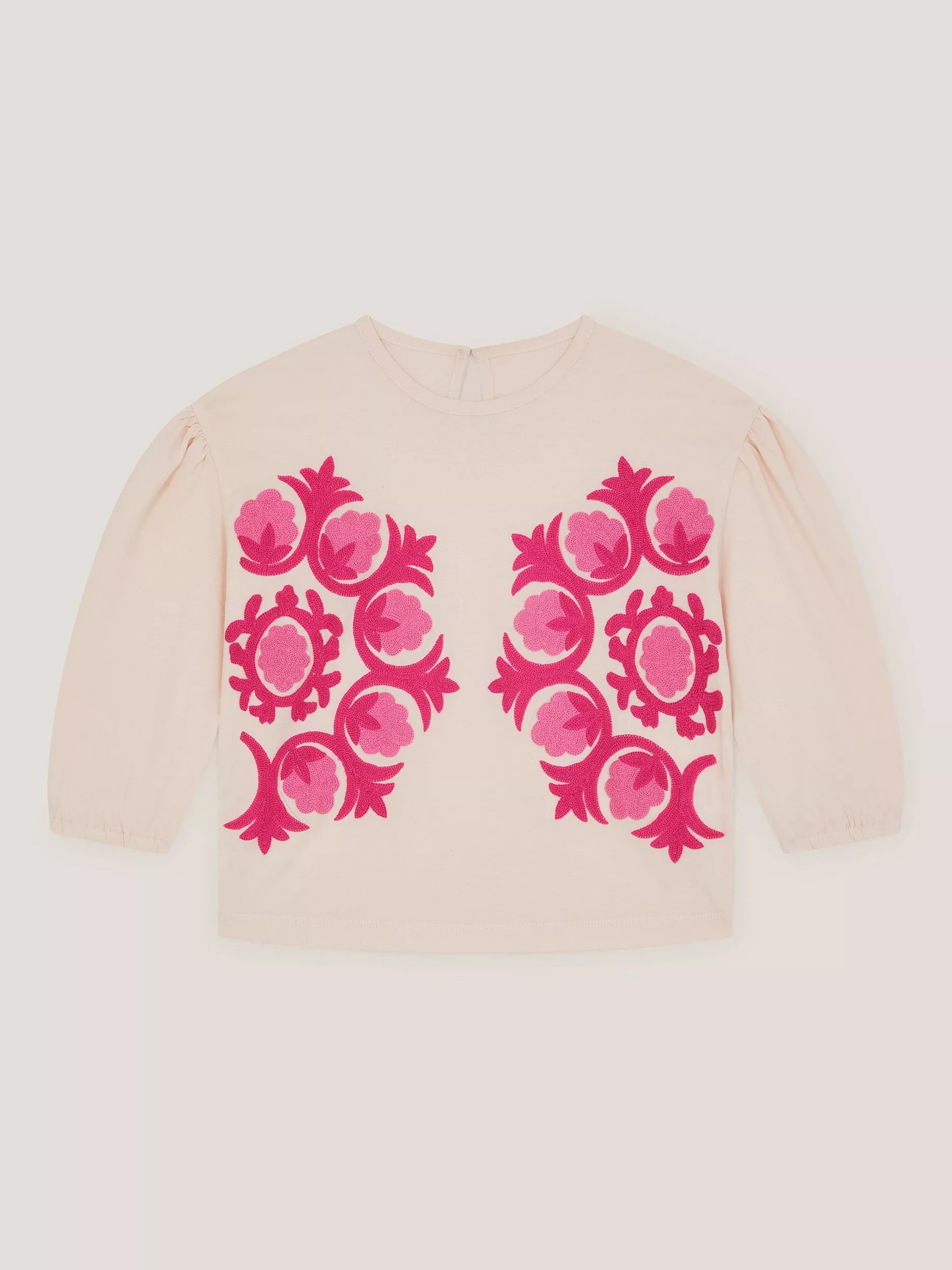 Designed with a long sleeve and embroidered chain stitch detail on the front.