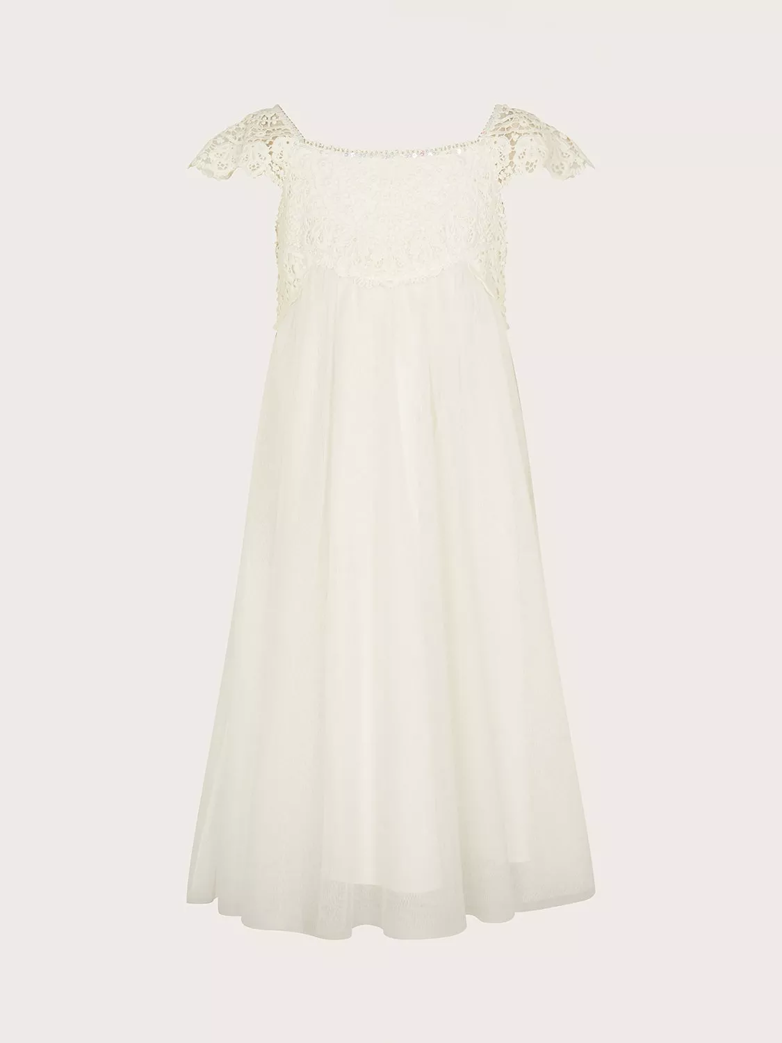 With lacy accents, this short sleeve dress by Monsoon is made from a soft yet robust fabric that will keep up with the day ahead.