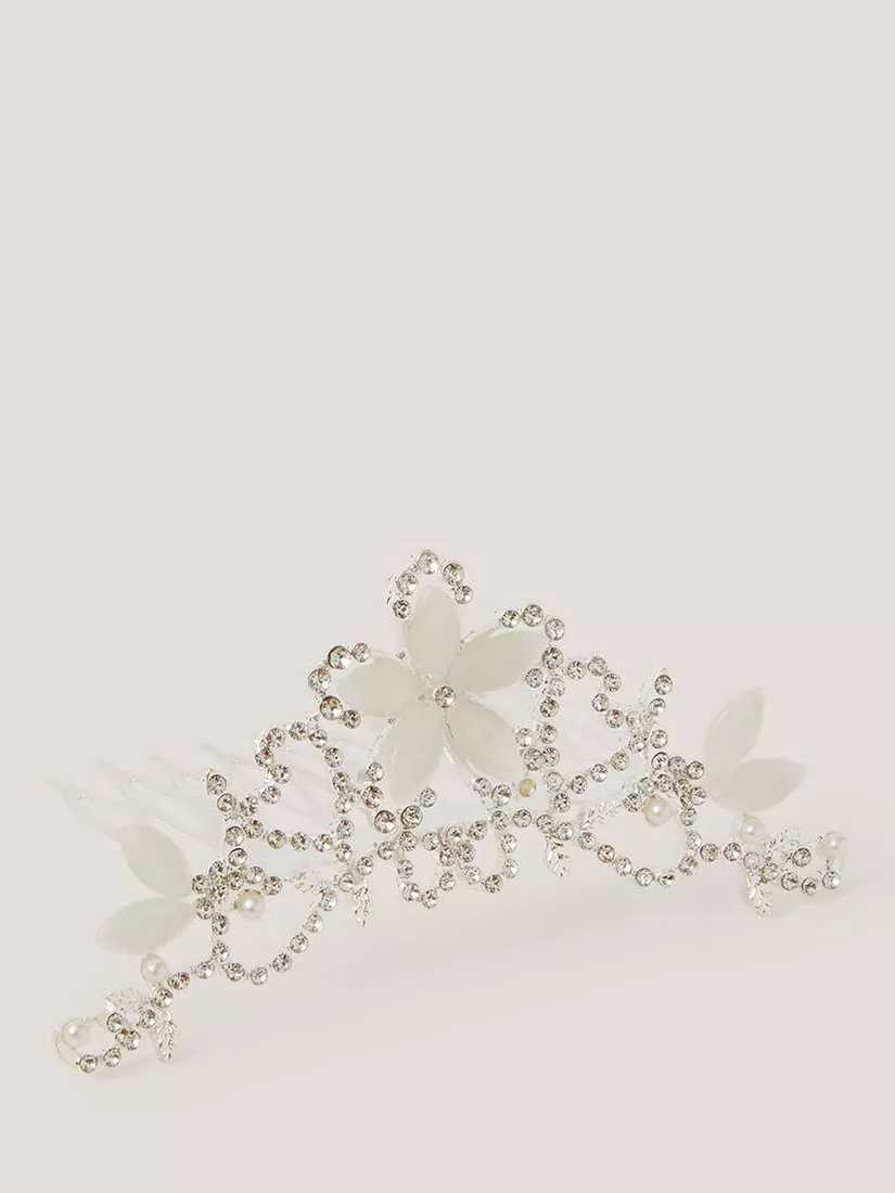 MonsoonKids' Flora Tiara Hair Comb, Silver