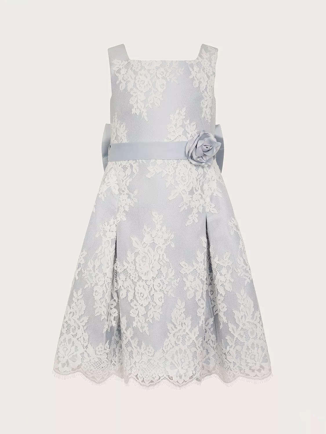 Treat your little princess to this extra-special piece, combining twill and floral eyelash lace. Around the waist sits a ribbon for fastening into a bow and the hemline is beautifully scalloped for a delicate finish.