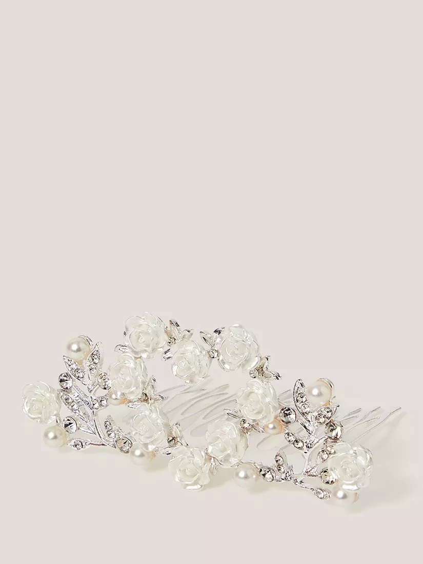 A bedazzling tiara comb embellished with sparkling diamantes and roses on a simple slide-in comb.