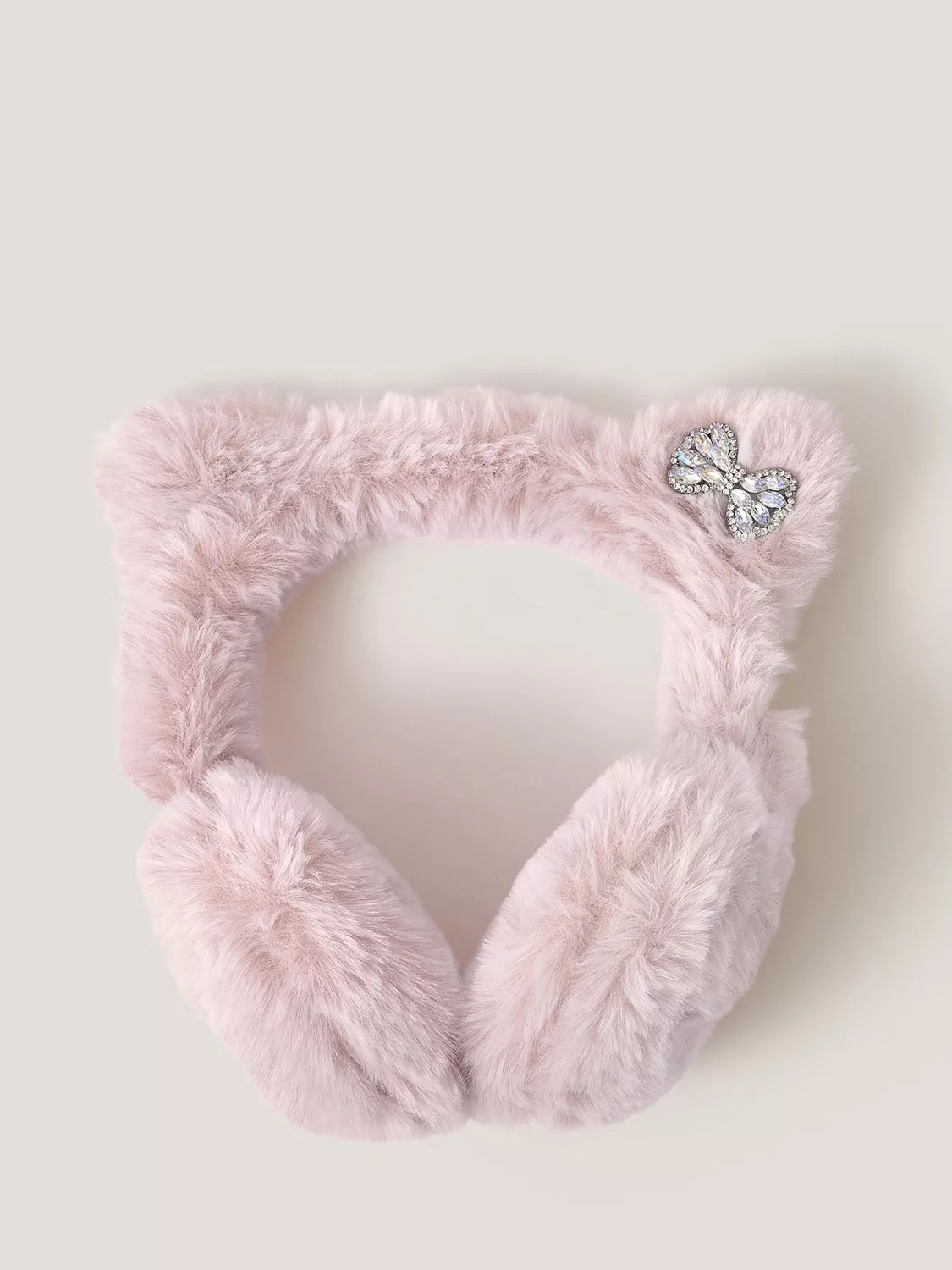 Meow! Coated in pretty pink (faux) fur, these earmuffs feature a cute cat ear design with a glitzy bow detail to finish. Purr-fect for keeping their ears warm and toasty all season long.