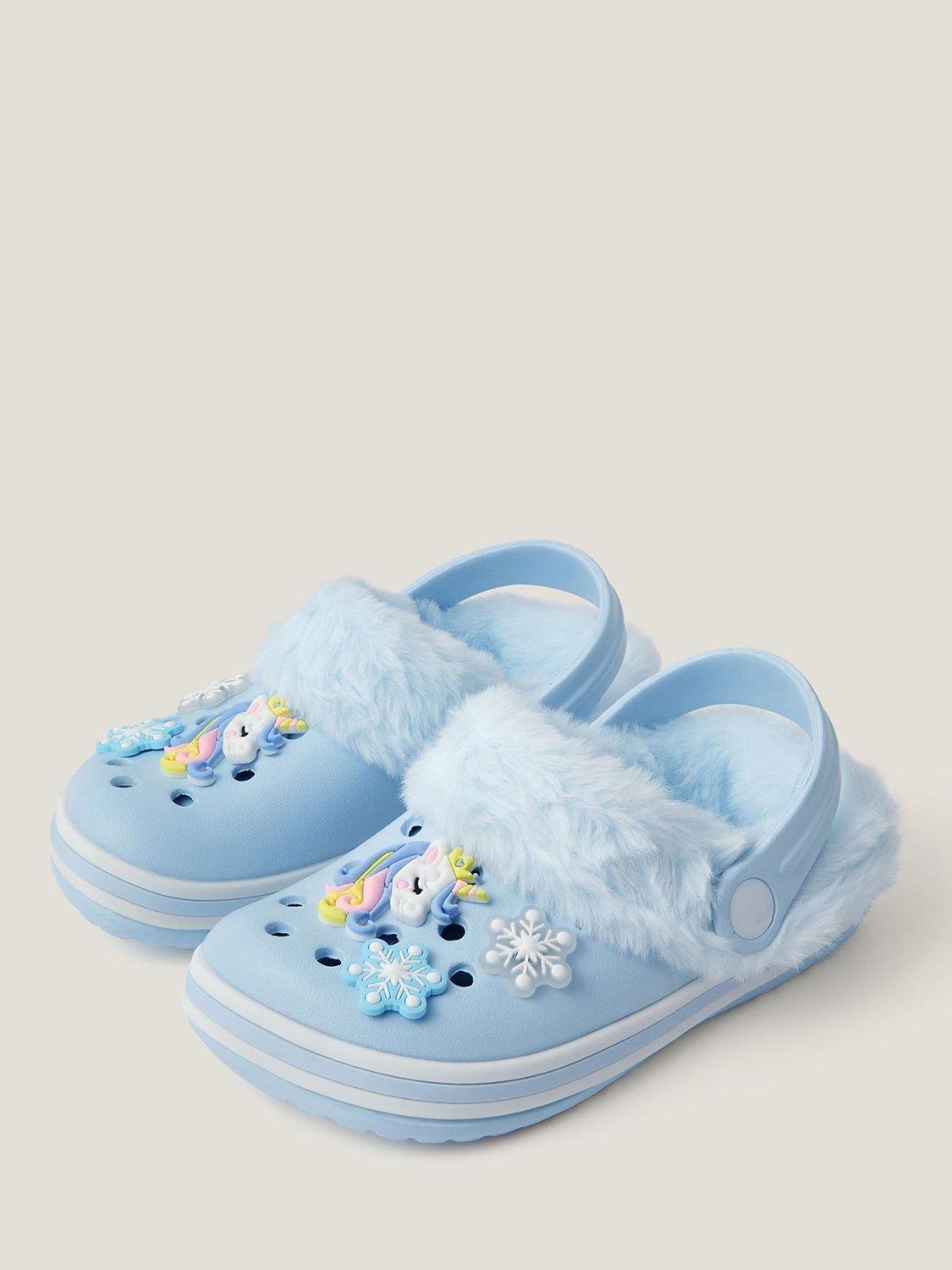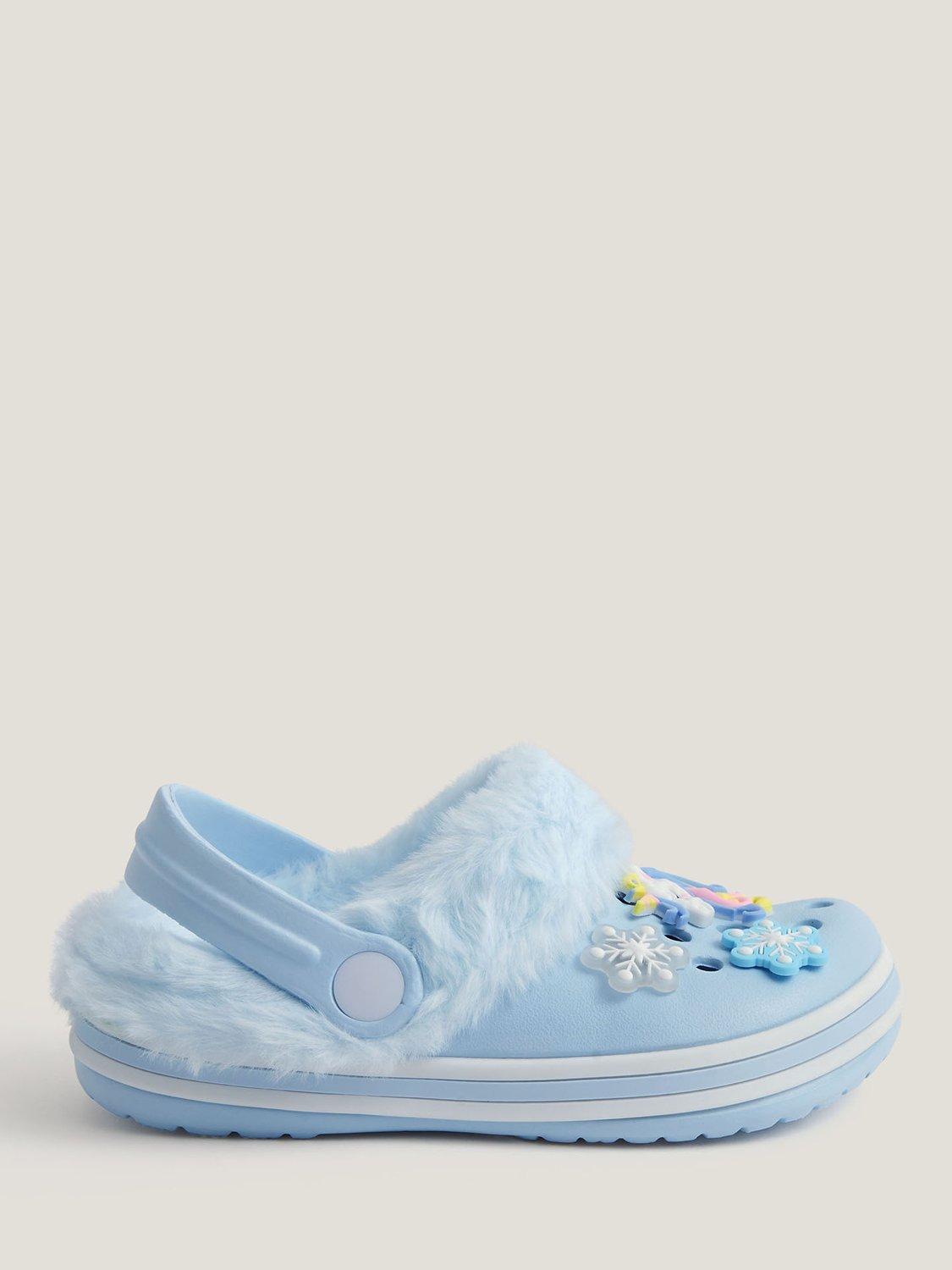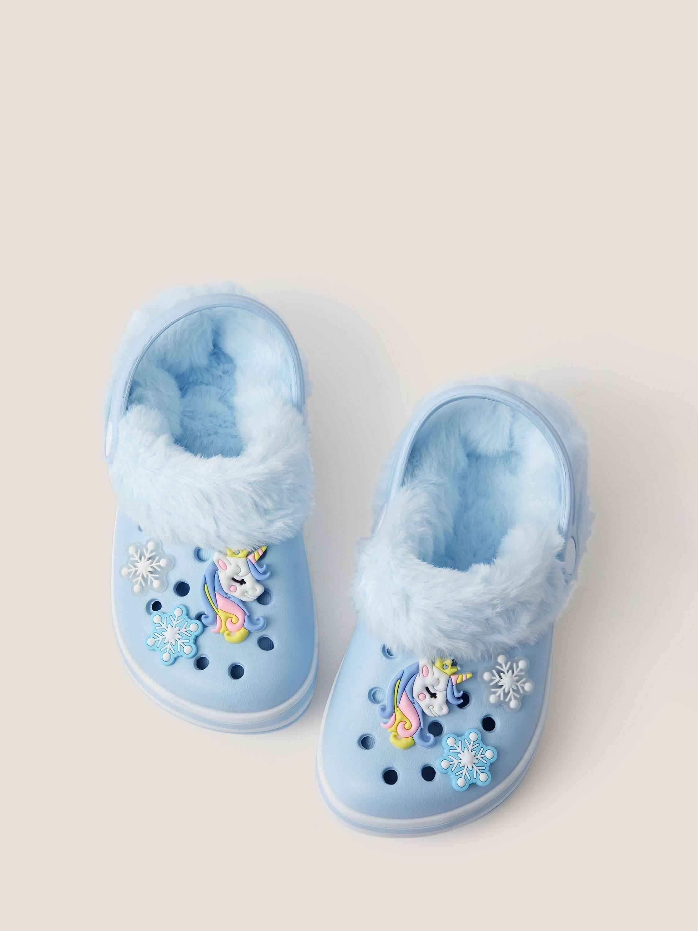 Designed in icy blue with snowflake and unicorn charms, these clogs are perfect for chill days. Designed with a movable strap at the heels and lined with snuggly faux fur for an extra-cosy feel.