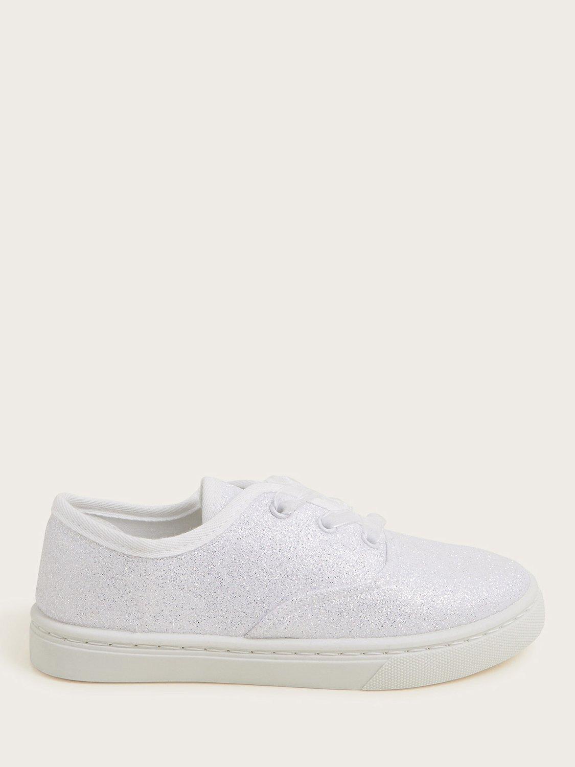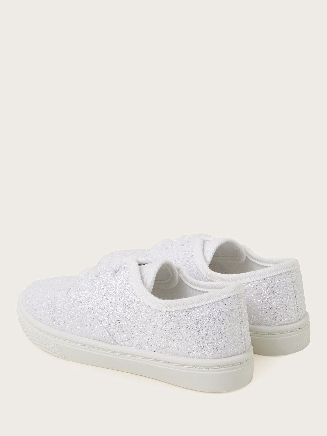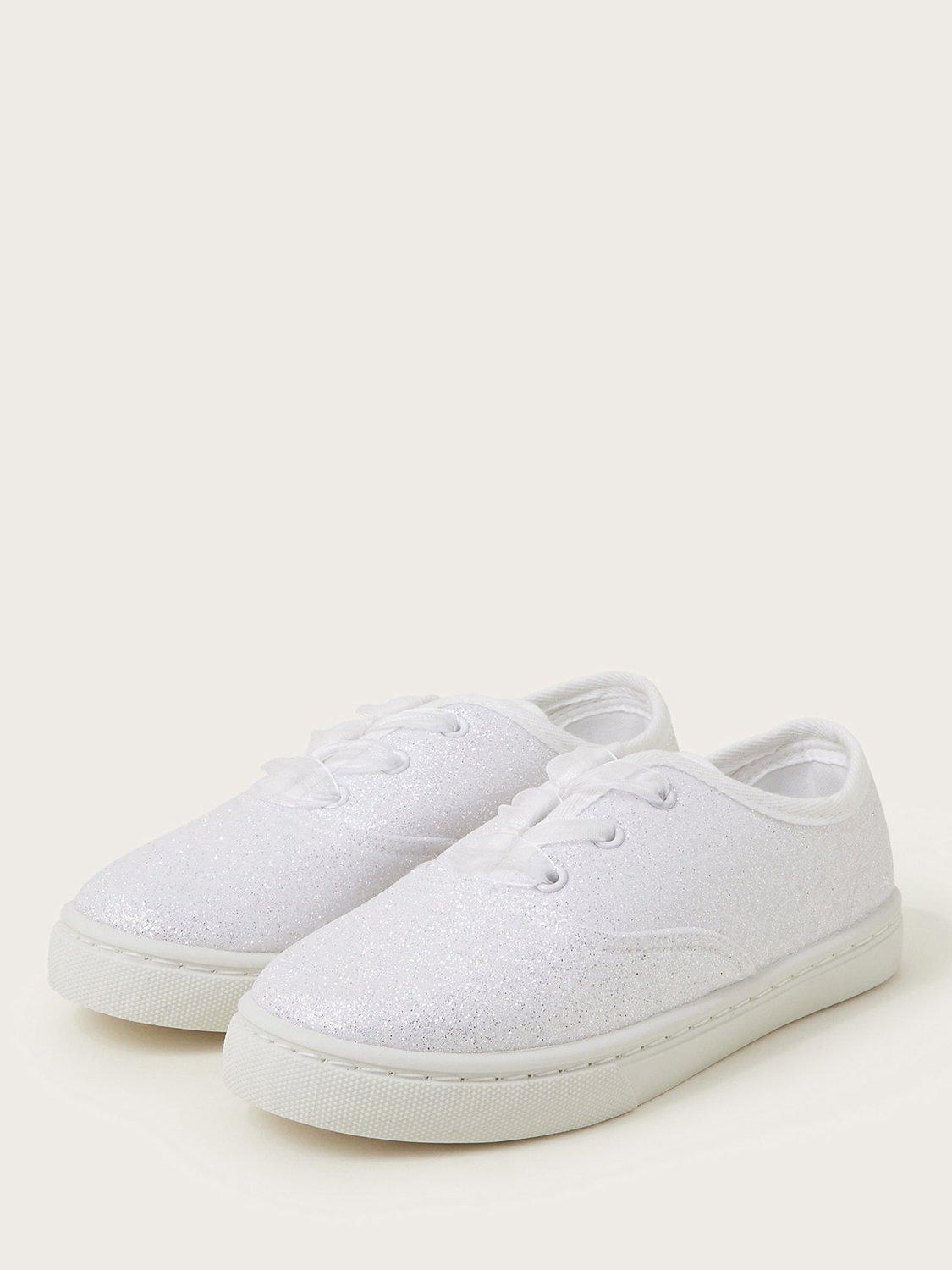 Coated in icy glitter, these trainers boast a classic pump profile with a mini platform sole. The gauzy mesh laces make them the perfect alternative to heels for special occasions, from weddings to communions and beyond.