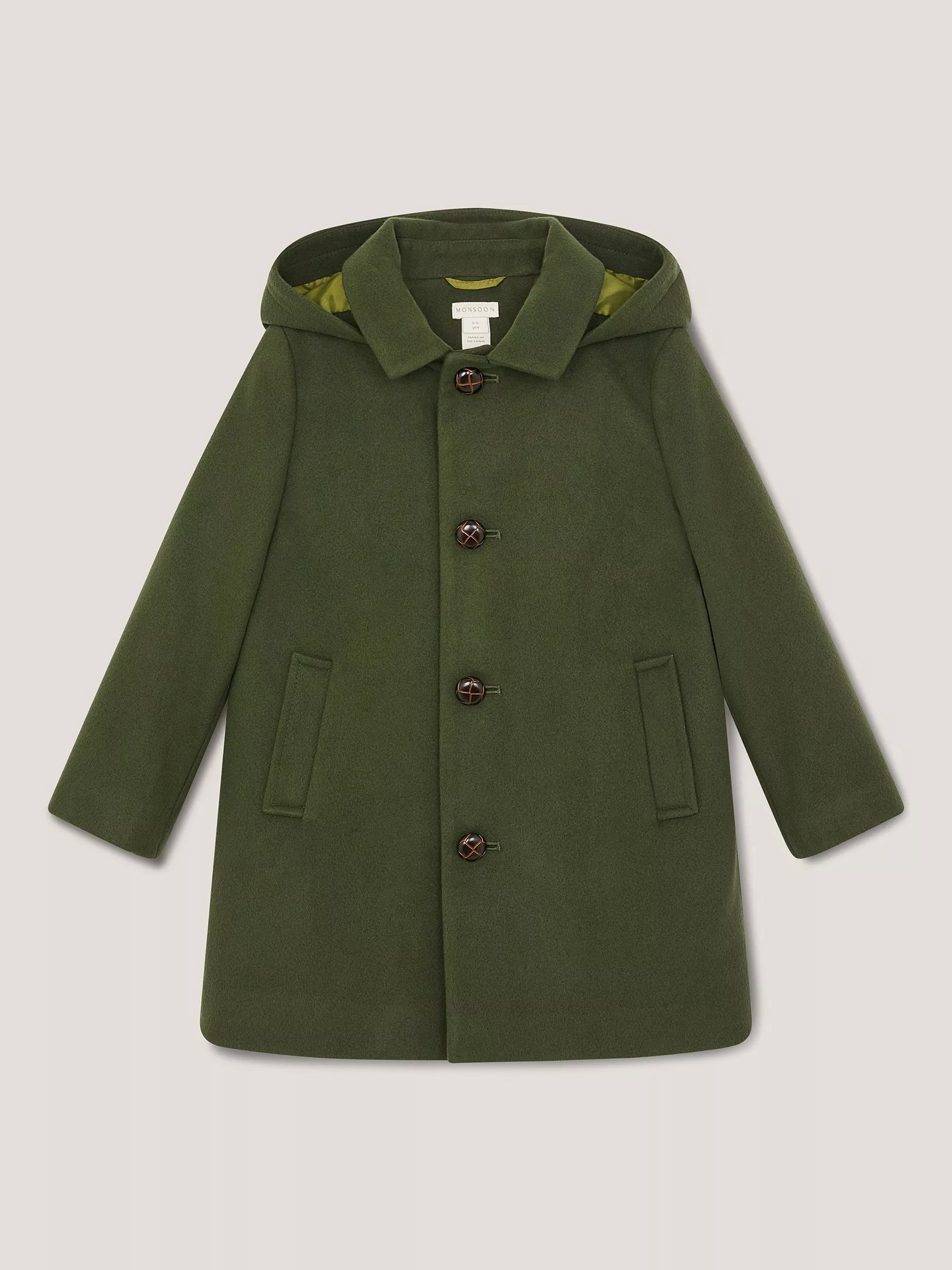 Crafted from a textured, wool-effect fabric, this hooded coat from Monsoon is designed with a classic collar, button fastening and side pockets.