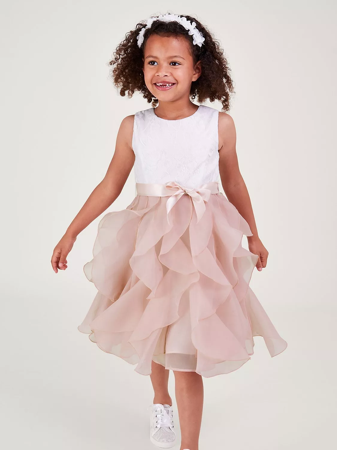 This dress is true party perfection. Made for comfort and partying, the gown features a detachable ribbon belt and layered ruffle skirt that’s great for twirling.