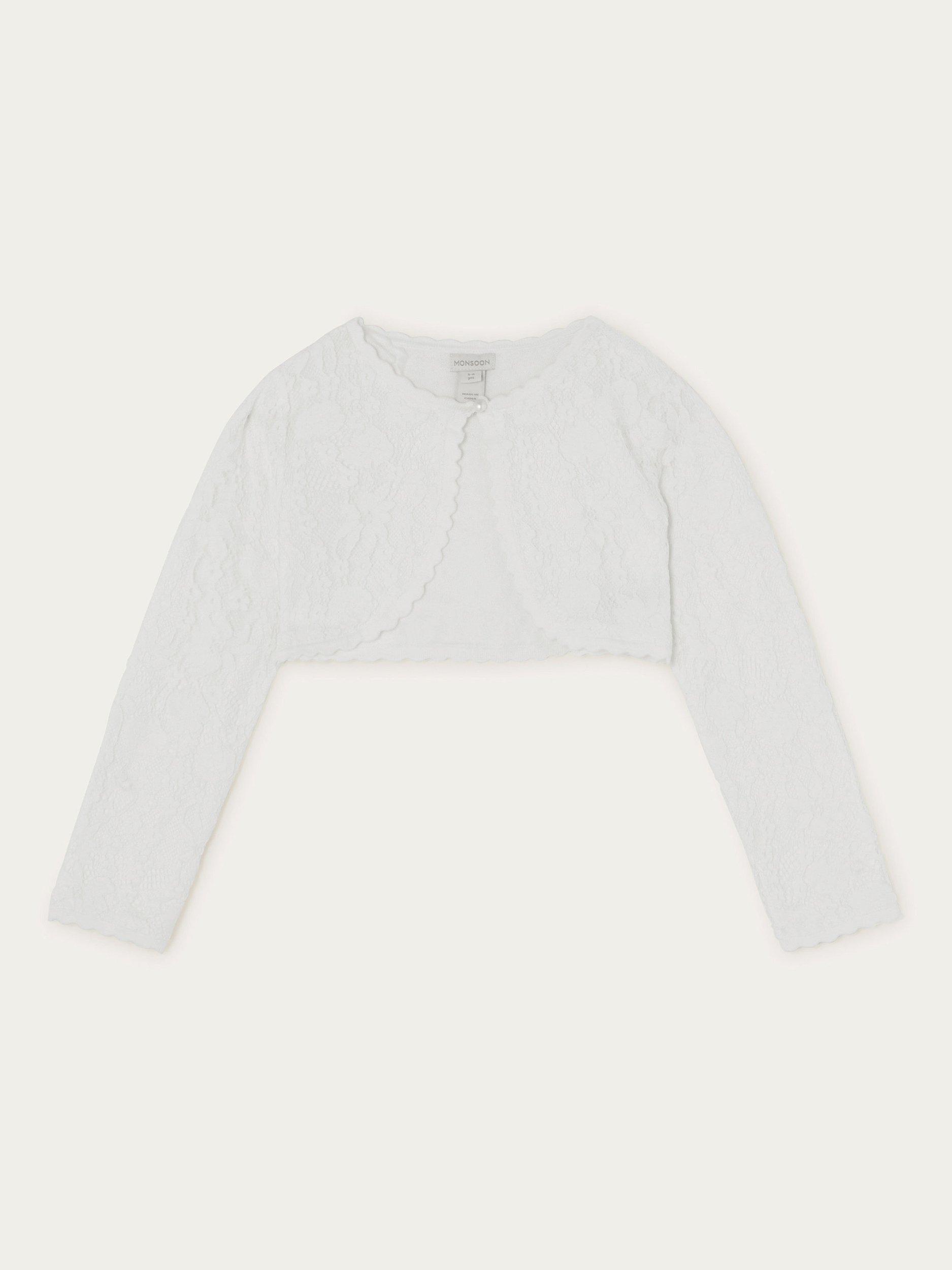 Layer this sweet and sparkly cardigan over them for some extra warmth on those long occasion days. This piece comes fitted with a single button fastening on the top so they can show off their outfit.