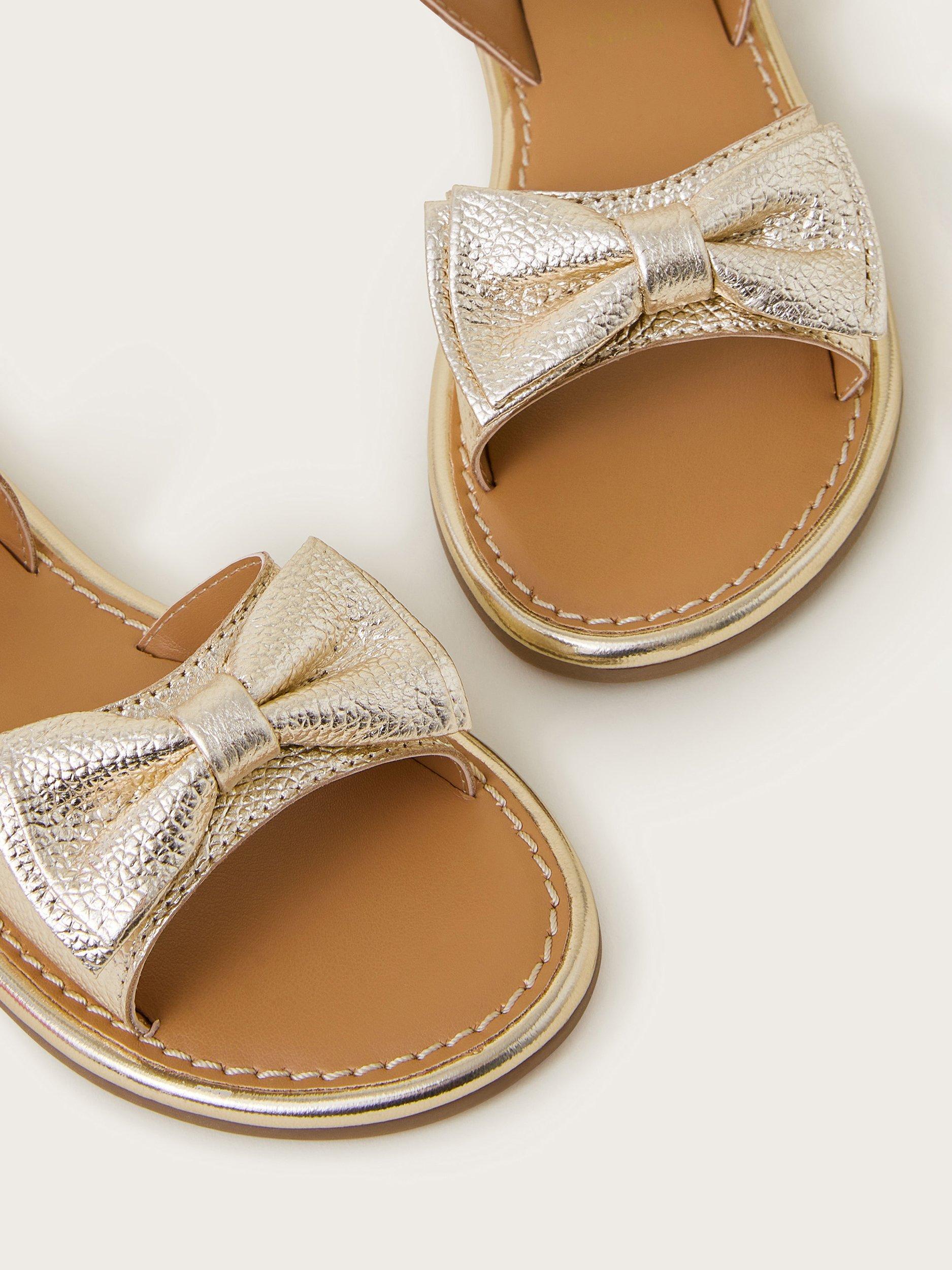 Meet you by the ice cream parlour. Made with sunny days in mind, these sandals feature a strappy design with an adorable bow to the toe. Crafted in leather with a gold finish, they fasten with a pin-buckle strap.