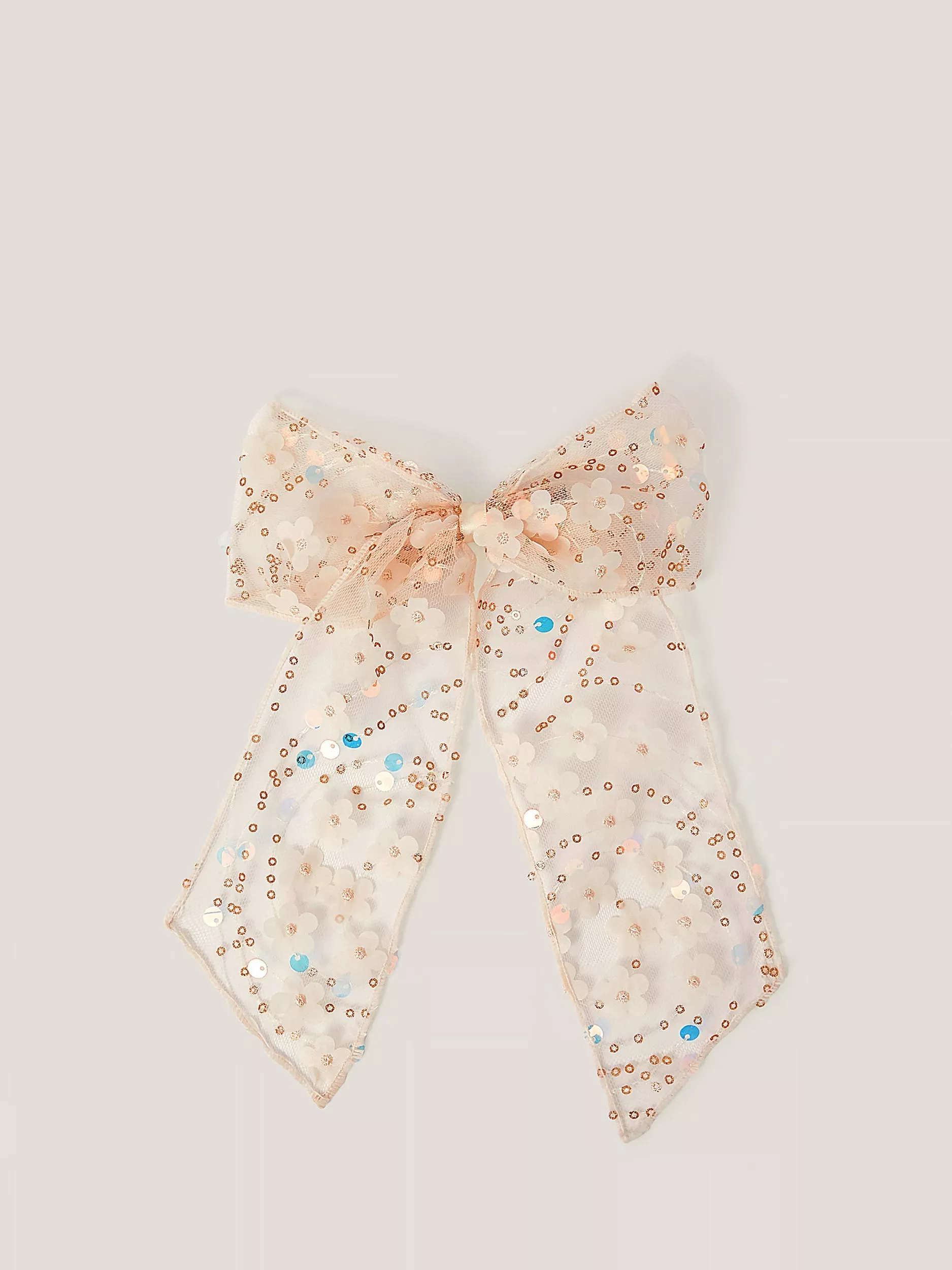 Designed in pink mesh and embellished with fabric flowers and shimmery sequins, this Monsoon hair bow is the perfect party accessory.
