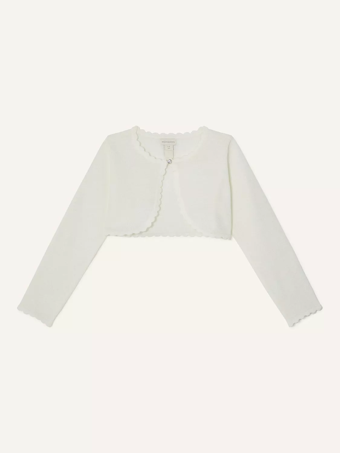 Layer this sparkly occasion cardigan for some extra warmth. Fitted with a single button fastening on the top so they can show off their fabulous outfit.