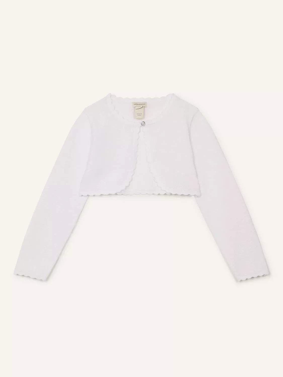 Adorable right? This cardigan is made from a cotton-rich blend and features scalloped detailing for a classic edge.