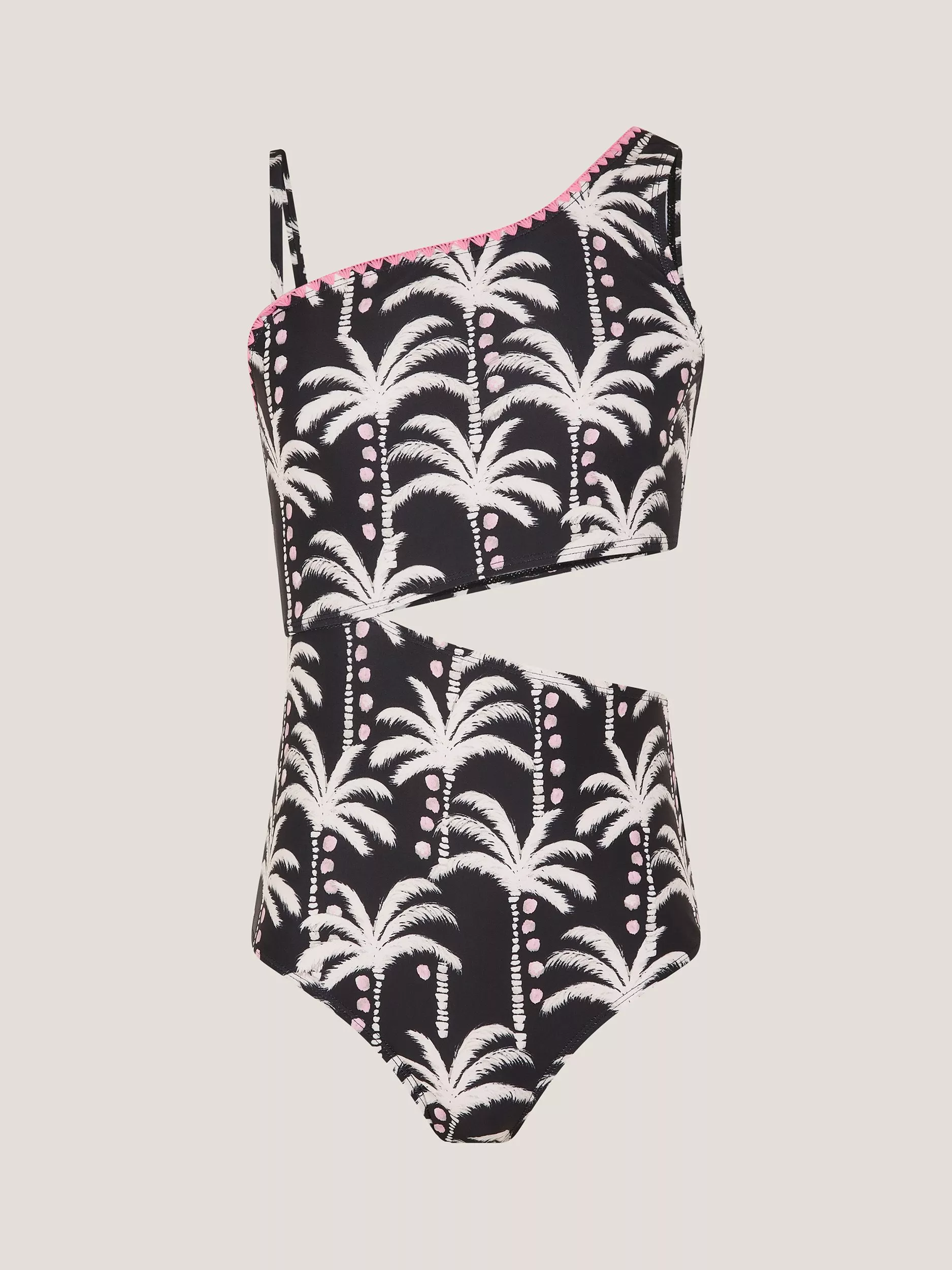 This asymmetric neck swimsuit combines striking embroidered details with a supportive fit, inviting everyone to embrace comfort and confidence whether by the pool or at the beach.