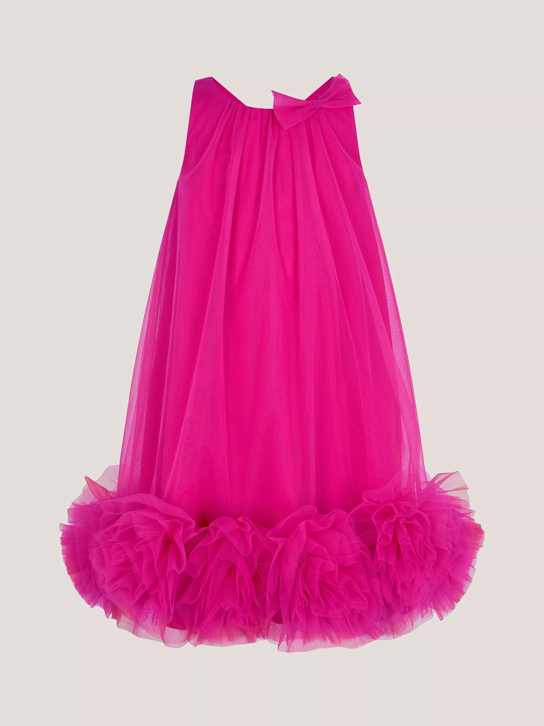 Barbie would so have this in her wardrobe. Showcasing a party-ready pink, this tulle dress is designed in a classic swing silhouette, with a cute bow at the neckline and XL pom-poms at the hem. Finished with a back button fastening.
