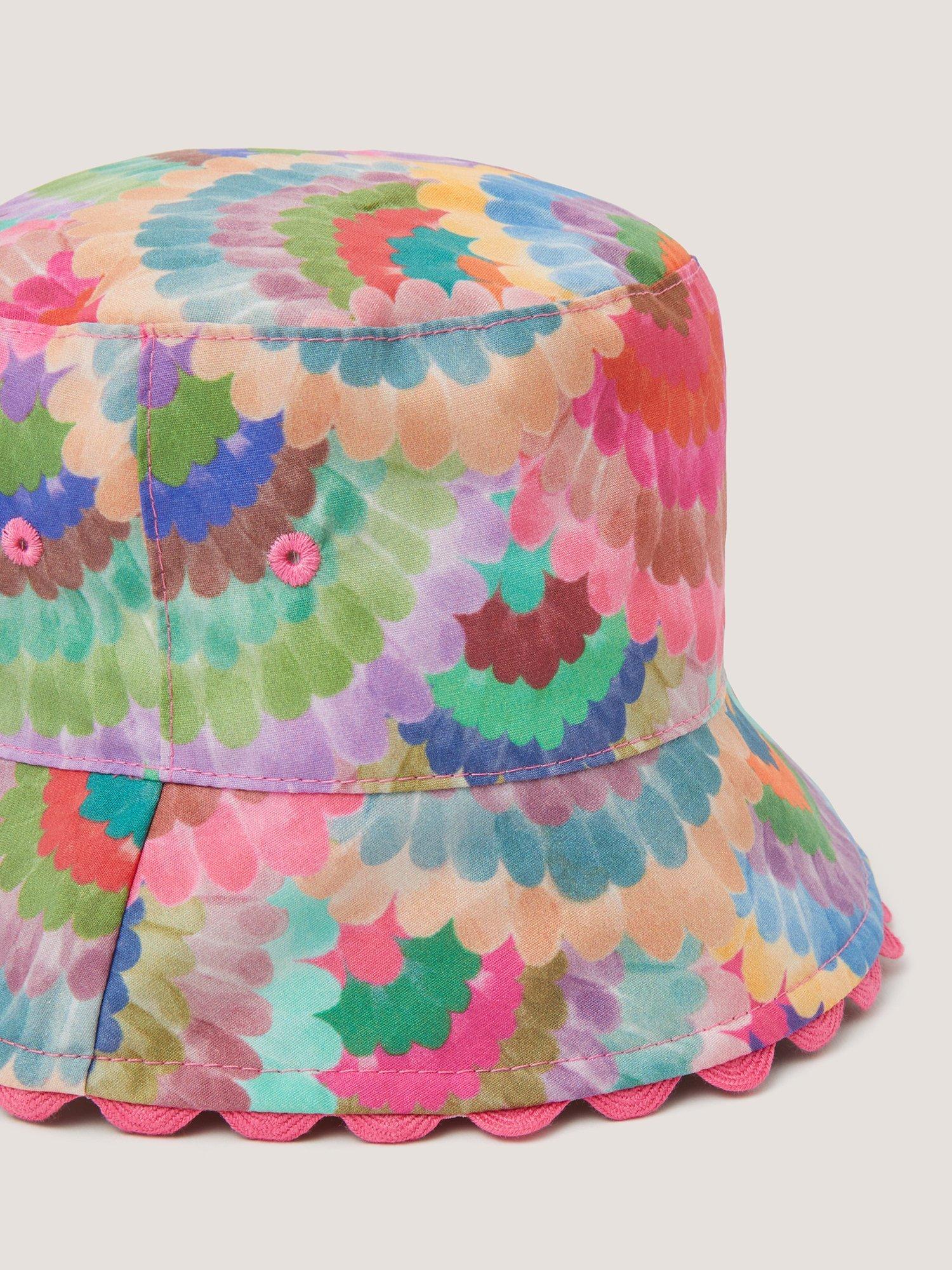 Made in breathable summer-proof cotton, this bucket hat showcases an artful fan pattern in a kaleidoscope of colours. With this in their suitcase, they'll be protected from the sunny rays in style.