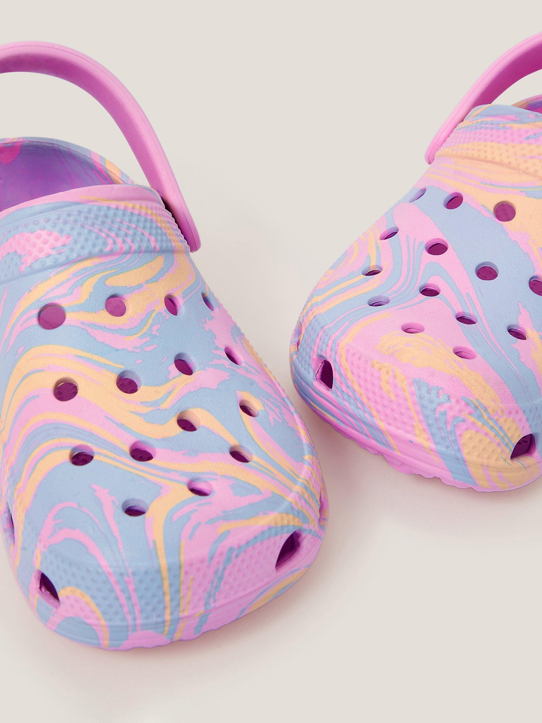 Clip, clog! Ensure they enjoy every sunny day with these clogs at the ready. They're designed with chunky soles and breathable holes in a gentle pastel marbled hue. Finished with a back strap that can be secured around the back of the heel or pushed up so they're easy to slide on and off.