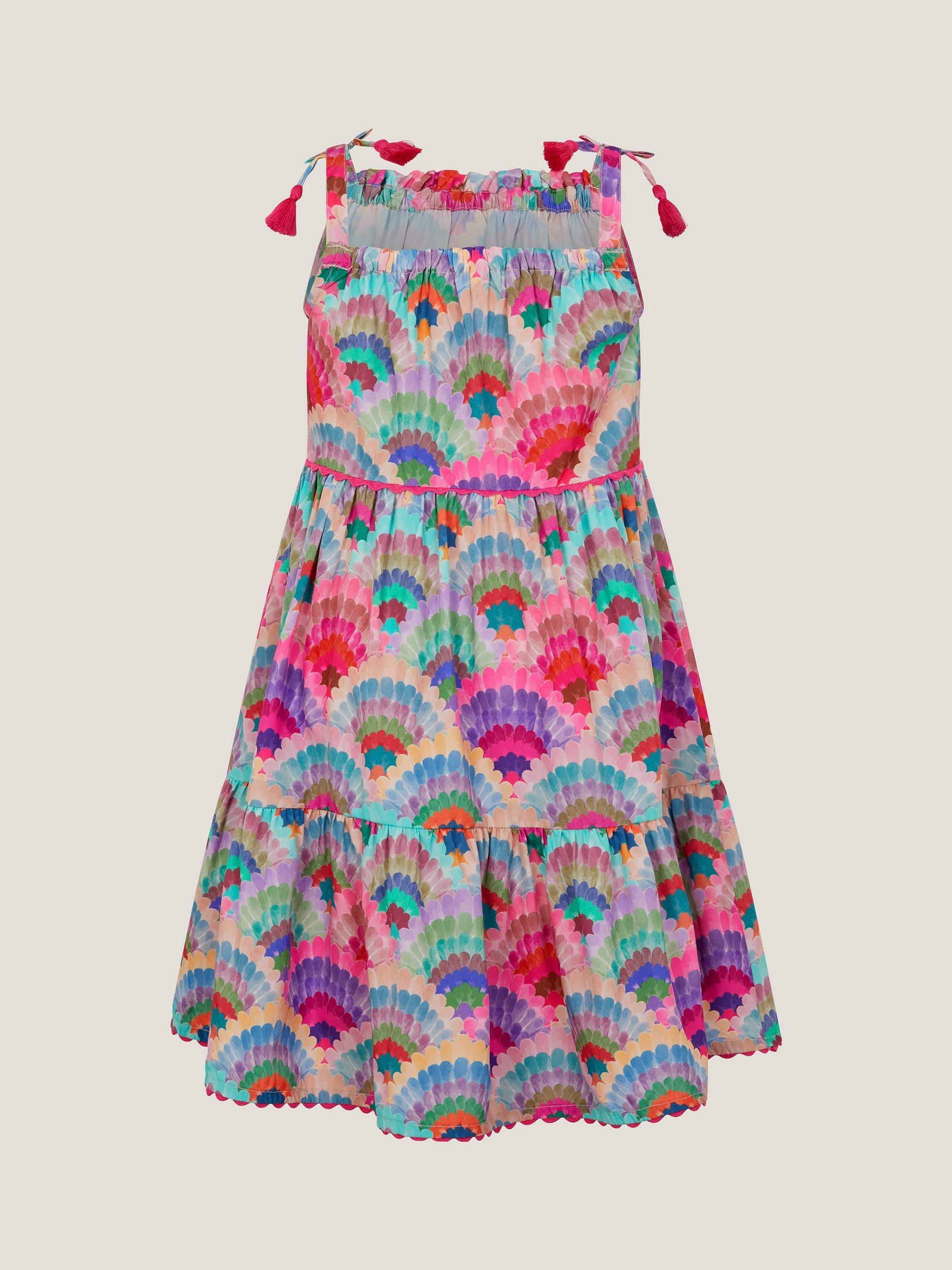 MonsoonKids' Rainbow Shell Tiered Dress, Multi, Multi