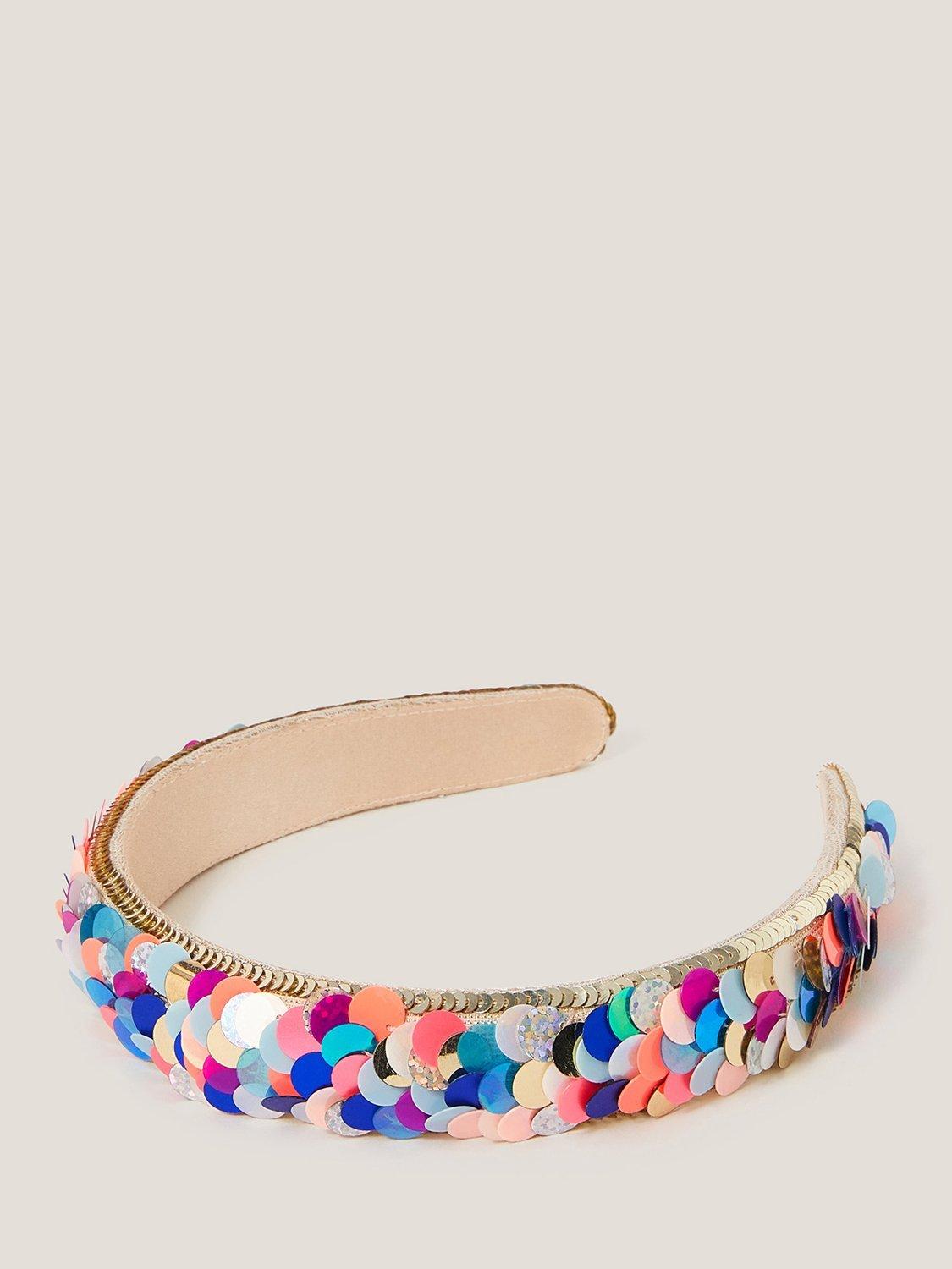 Dazzling. An accessory fit for a mermaid princess, this headband is adorned with round sequins in an array of dreamy colours and sparkly finishes.