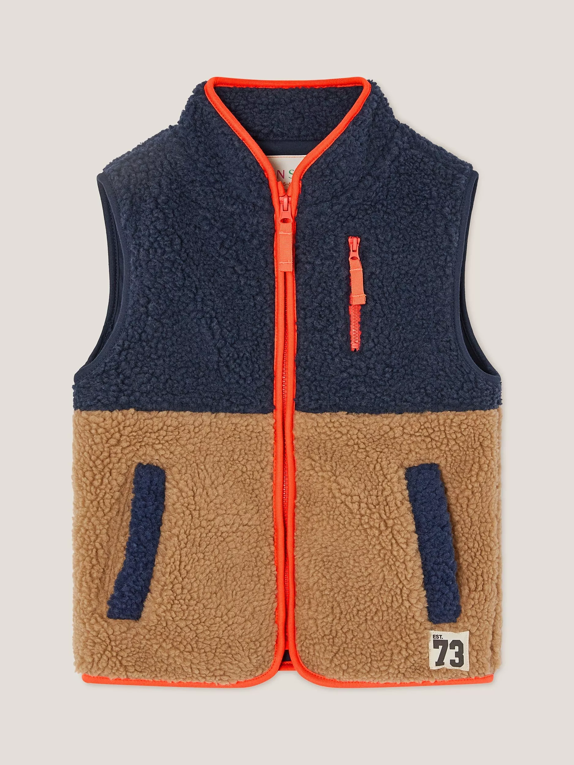 Crafted from soft, textured borg, this colour-block jumper from Monsoon is designed in a sleeveless style, with a zip front, zip detail to the chest and two side pockets.