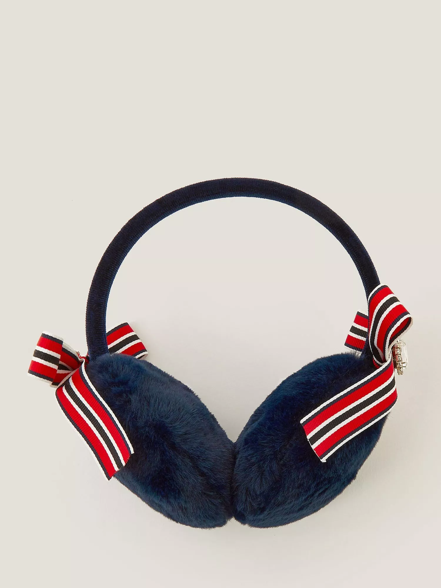 A warm hug for their ears, these fluffy ear muffs feature a smart bow finished with a sparkly gem detail.