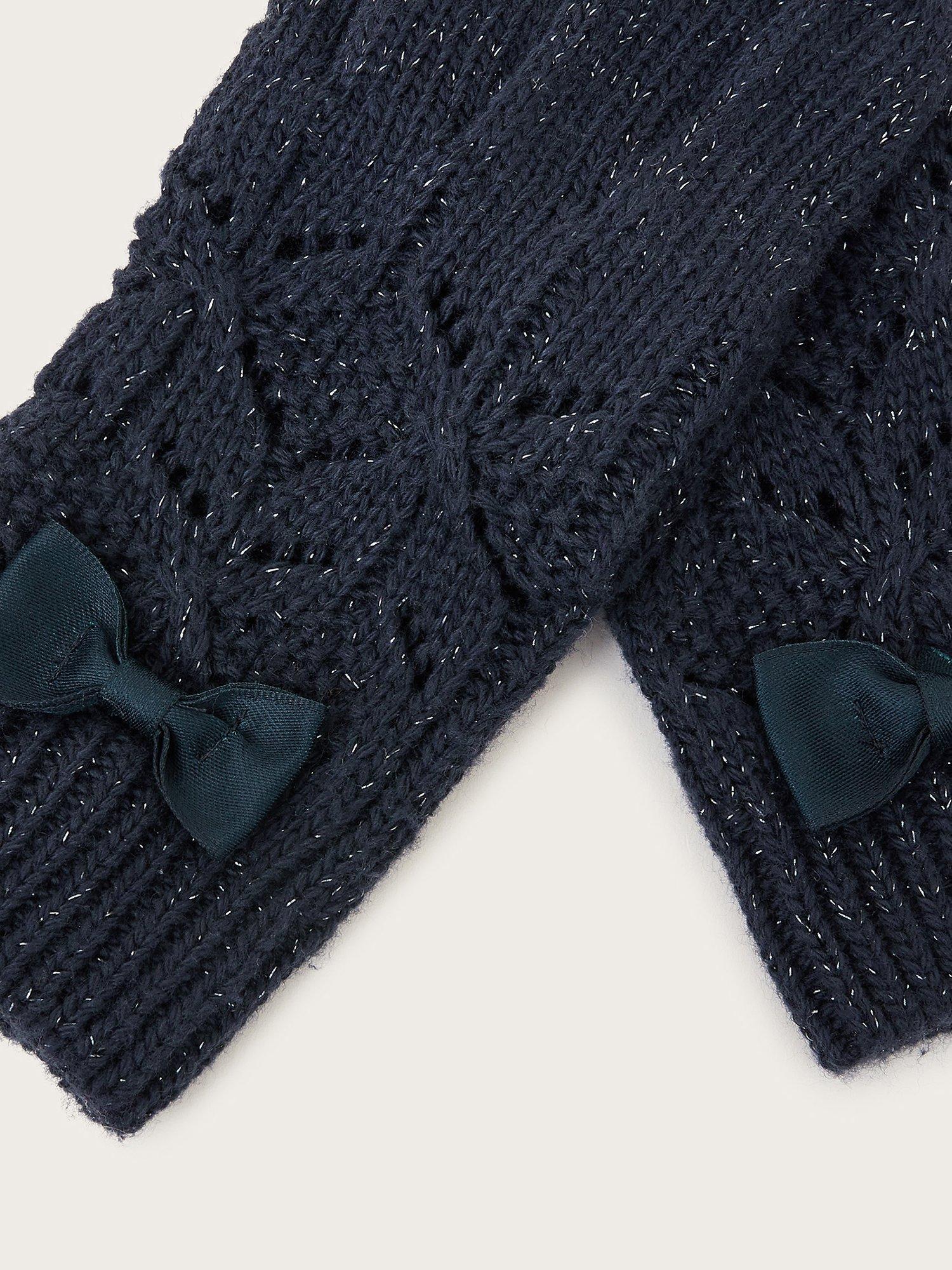 Crafted from a lightweight knit with metallic fibres, these gloves have a shimmery finish and are decorated with pretty bows.