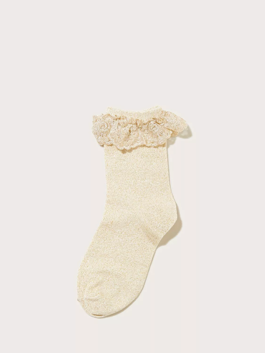 Woven with a metallic touch, this pair will complement any sparkly party dress. They're finished with a floral lace trim, looking beautiful peeping over the top of ballet flats.