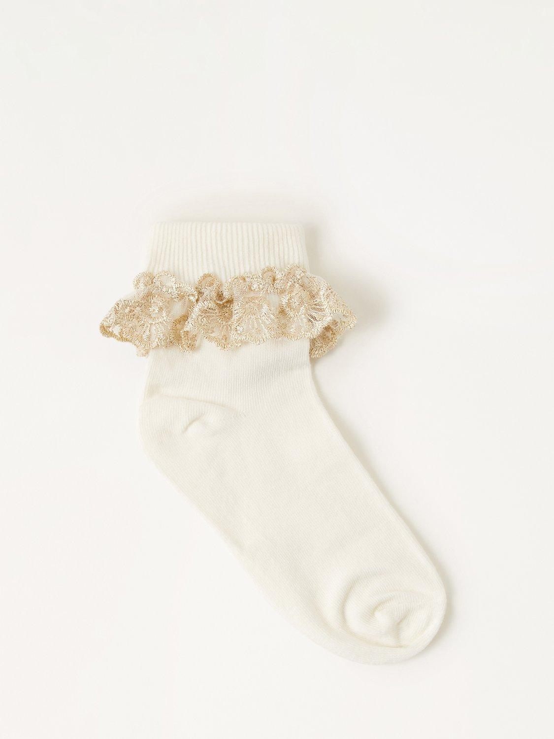 Not just an ordinary pair of socks. These are decorated with a sparkle frill to elevate their look, and they're made from a soft cotton blend.