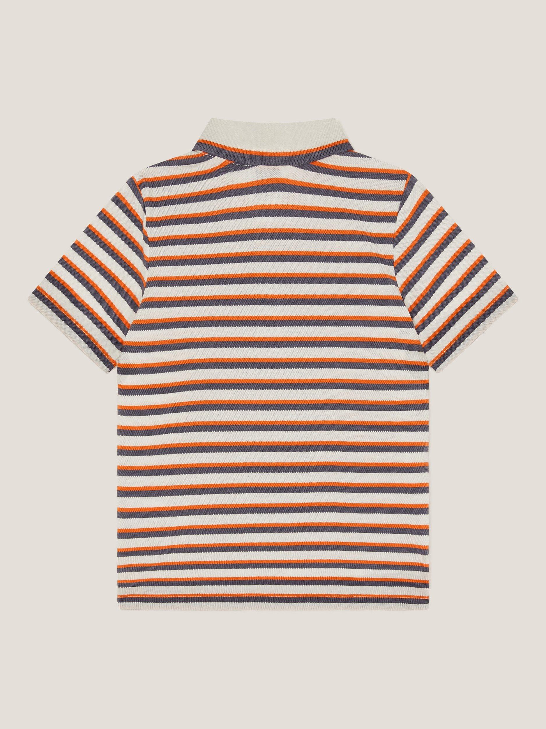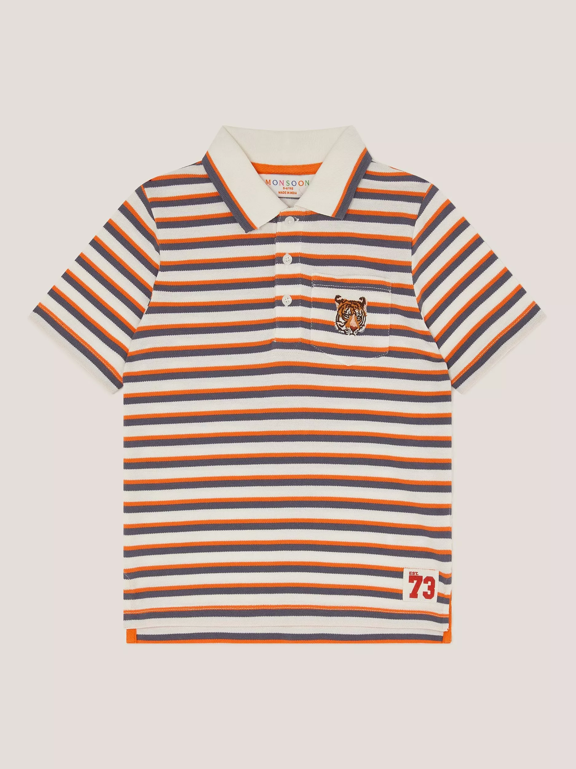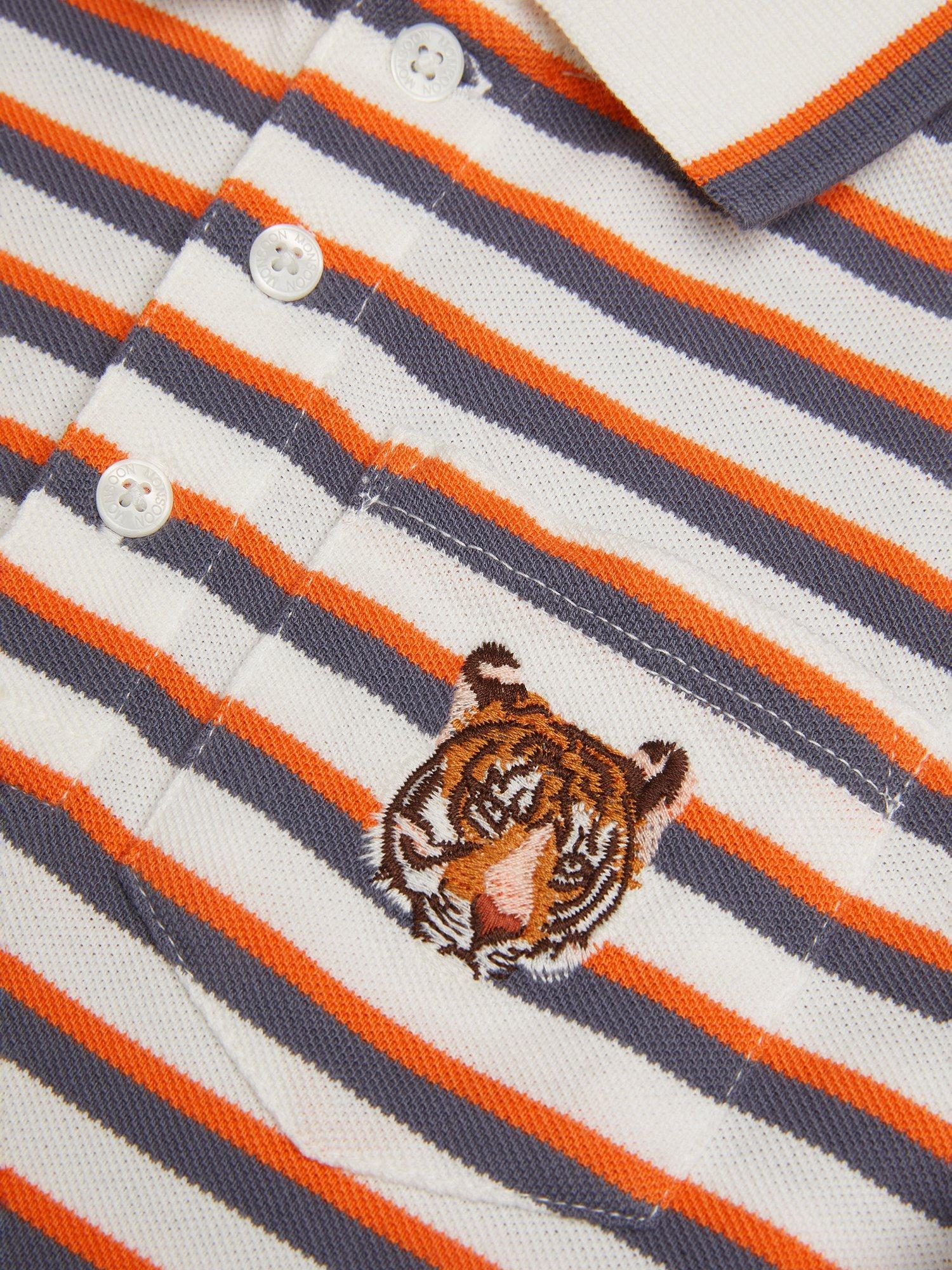 Not your average tiger stripes. Woven from cotton with orange and grey stripes, this polo shirt features an embroidered tiger head on the chest pocket.