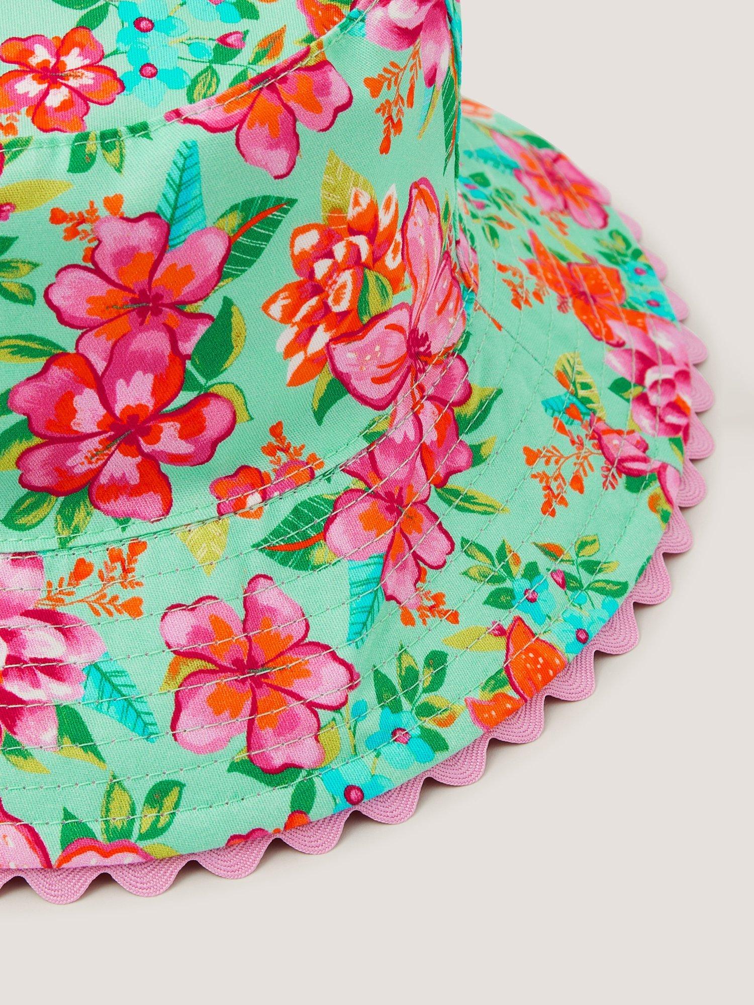 For all the island explorers! Bursting with tropical blooms on a vibrant backdrop, this bucket hat is a must-have for their summer holidays. The best bit? It's completely reversible, so they can switch it around daily.
