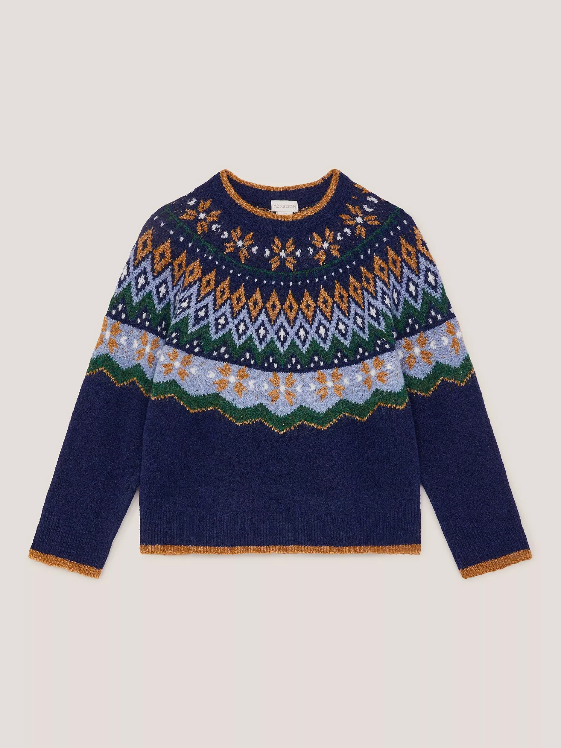 MonsoonKids' Wool Blend Fair Isle Jumper, Navy