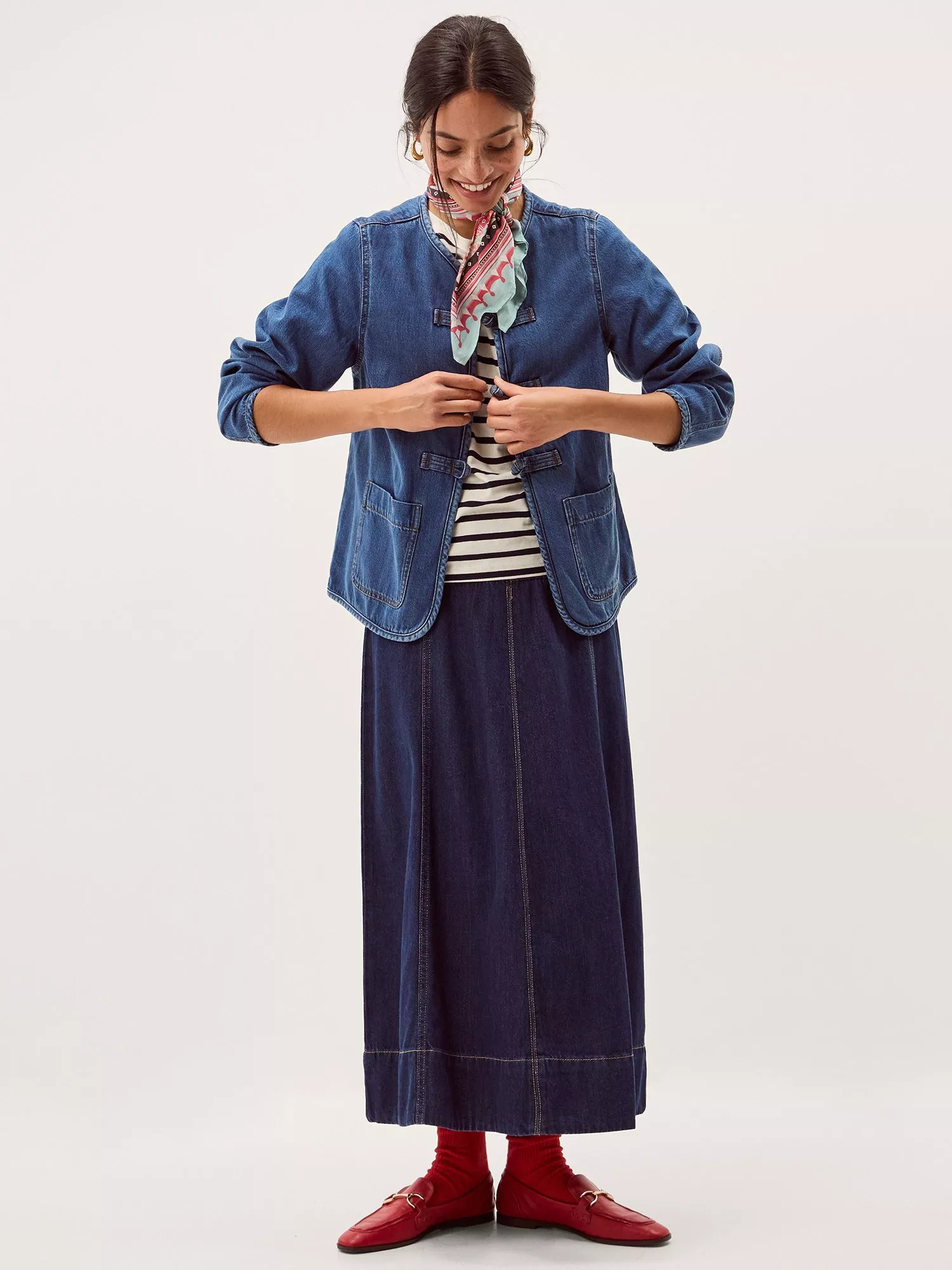 Monsoon denim jacket. Its regular fit and crew neck give you day-long comfort, while knot fastenings ensure it's easy to style.