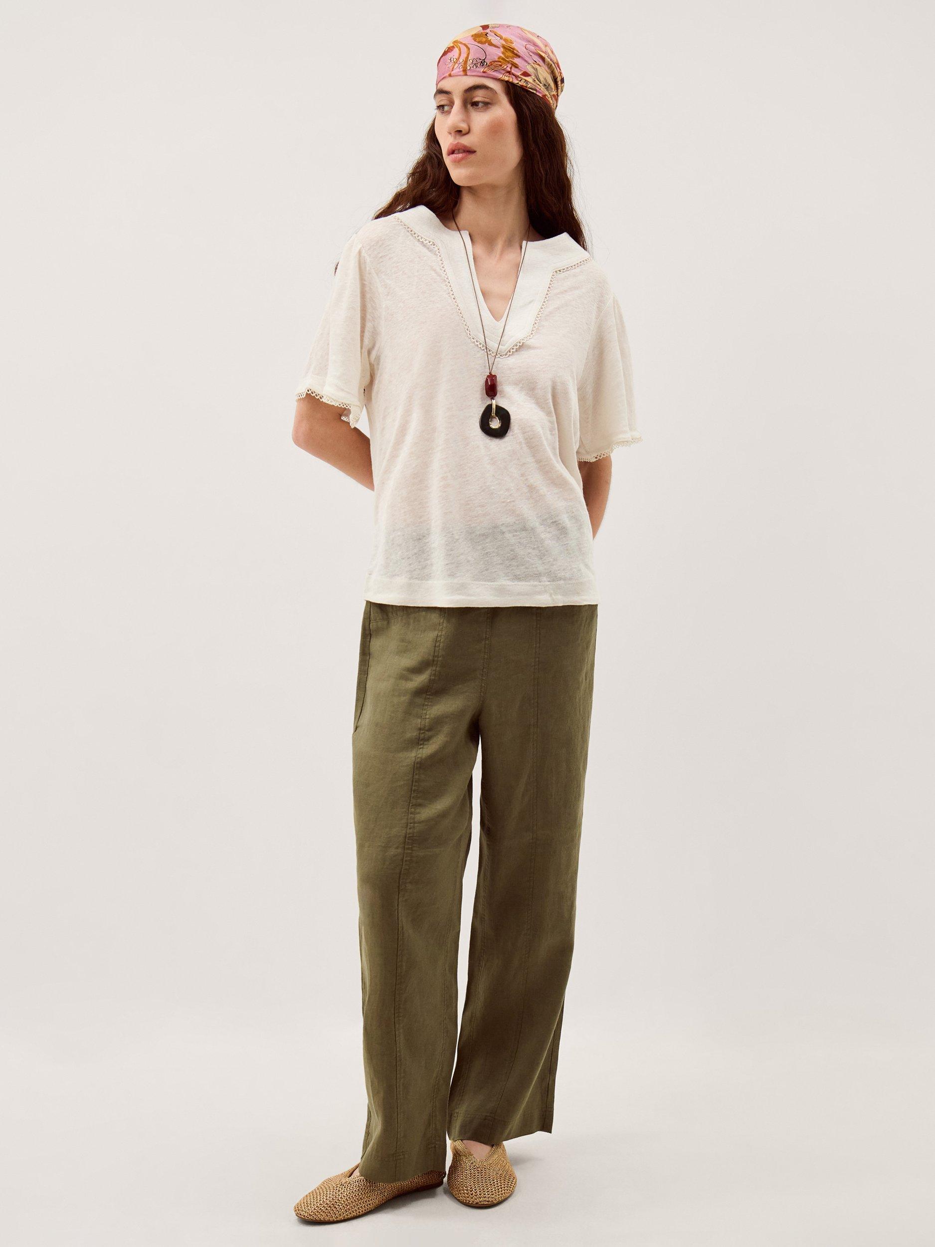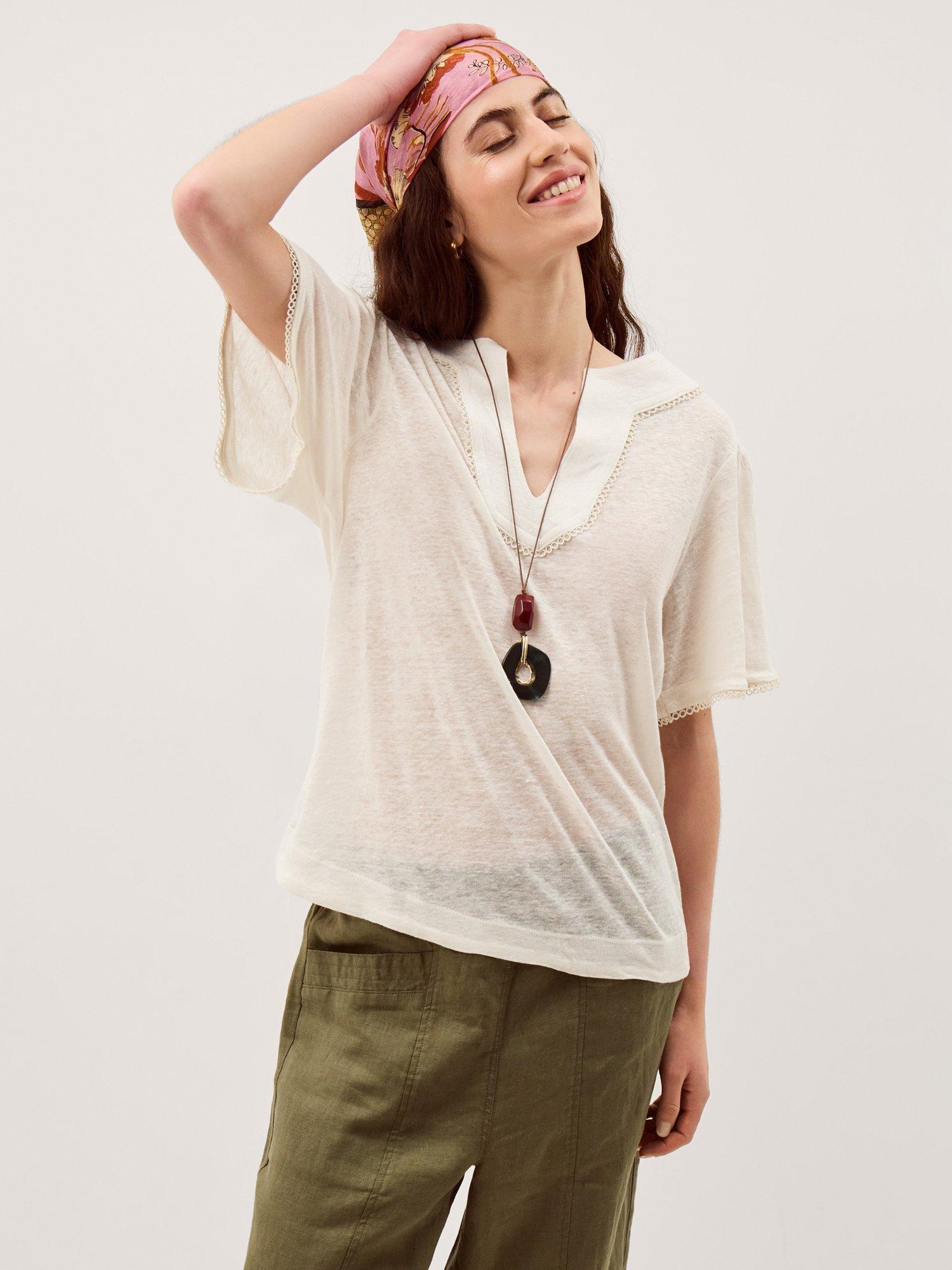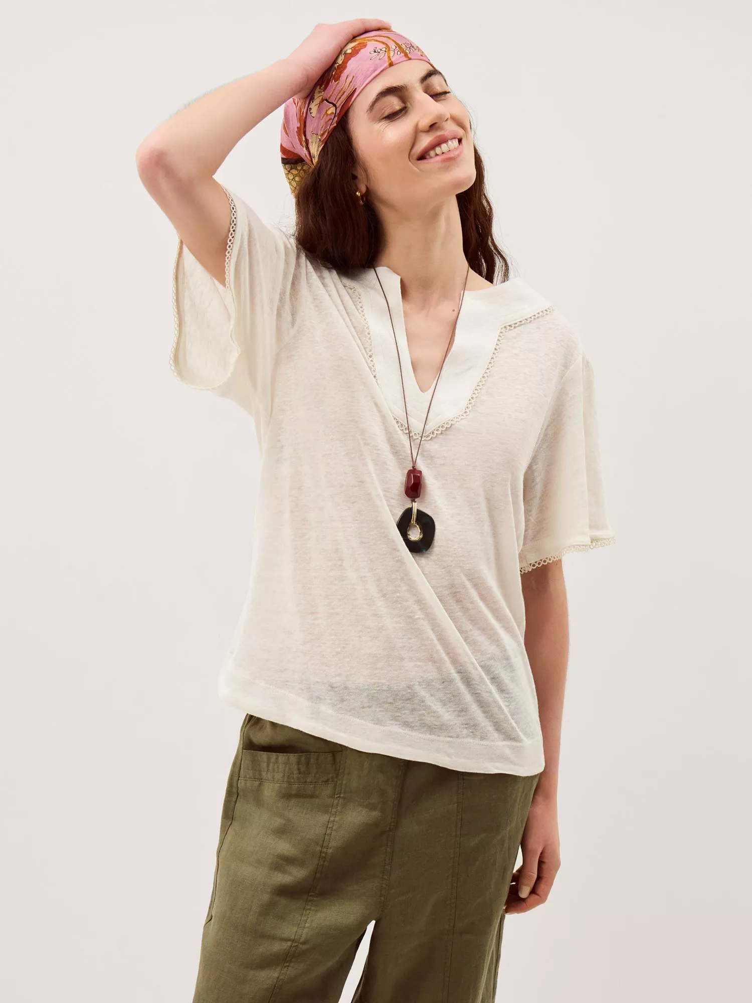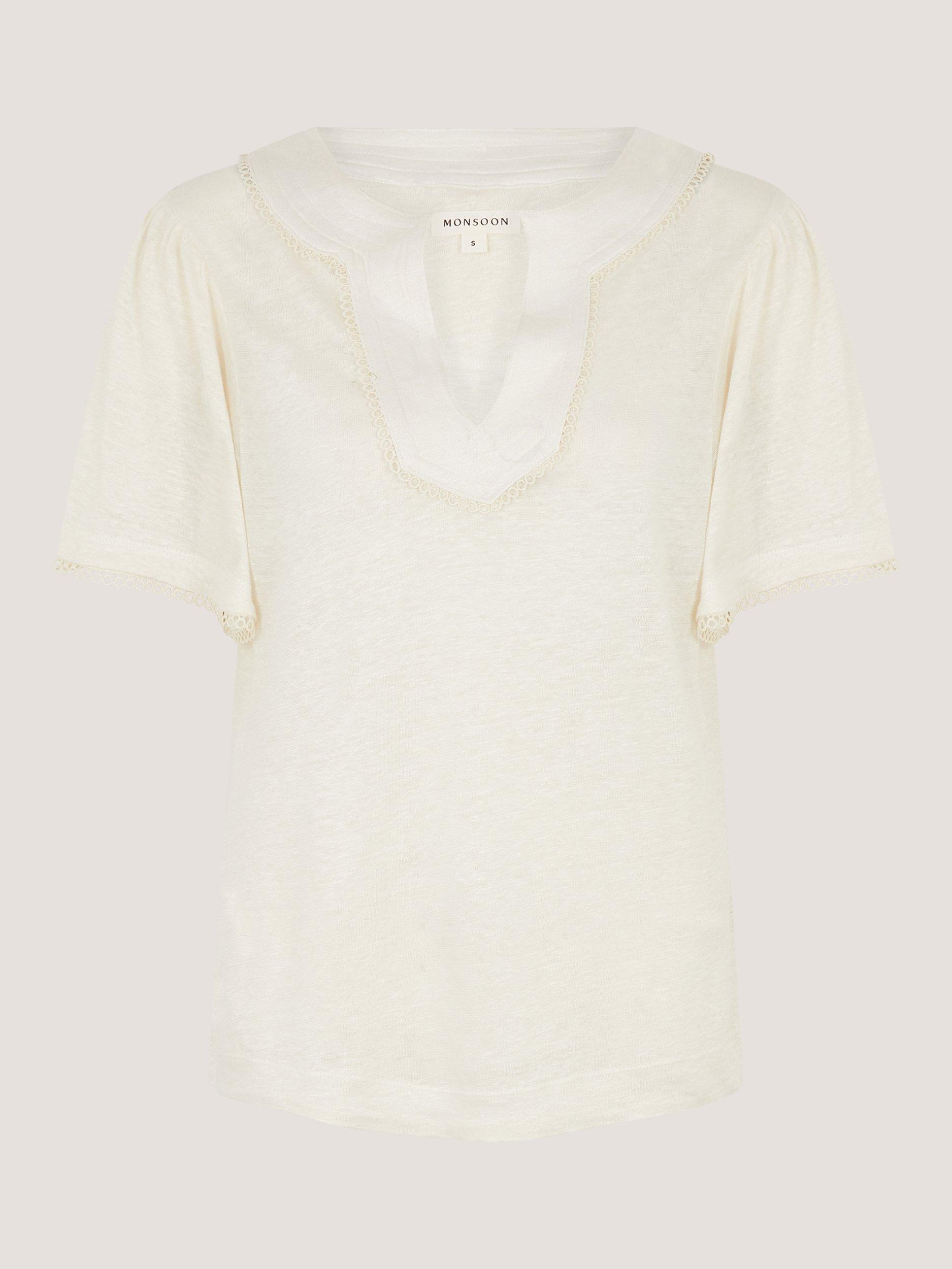 A top from Monsoon, made from light, breathable linen. Featuring a V-neck and short sleeves, the plain design means it goes with everything. A wear-everywhere essential.