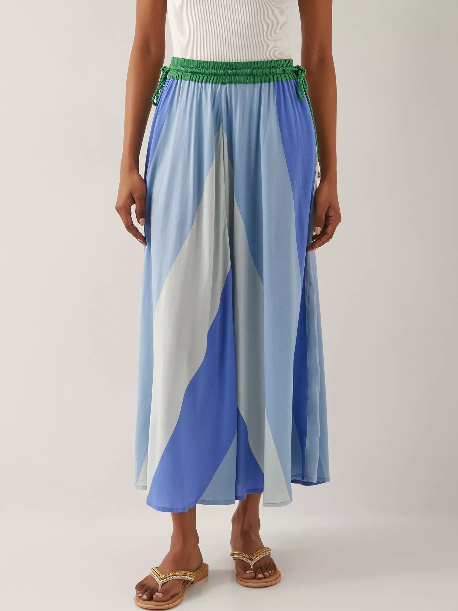 Flowy, free-spirited, and full of movement. This printed midi skirt brings instant vacay vibes. Cinched with a beaded drawstring waist, it's the perfect piece to slip on for sun-soaked strolls and rooftop cocktails.