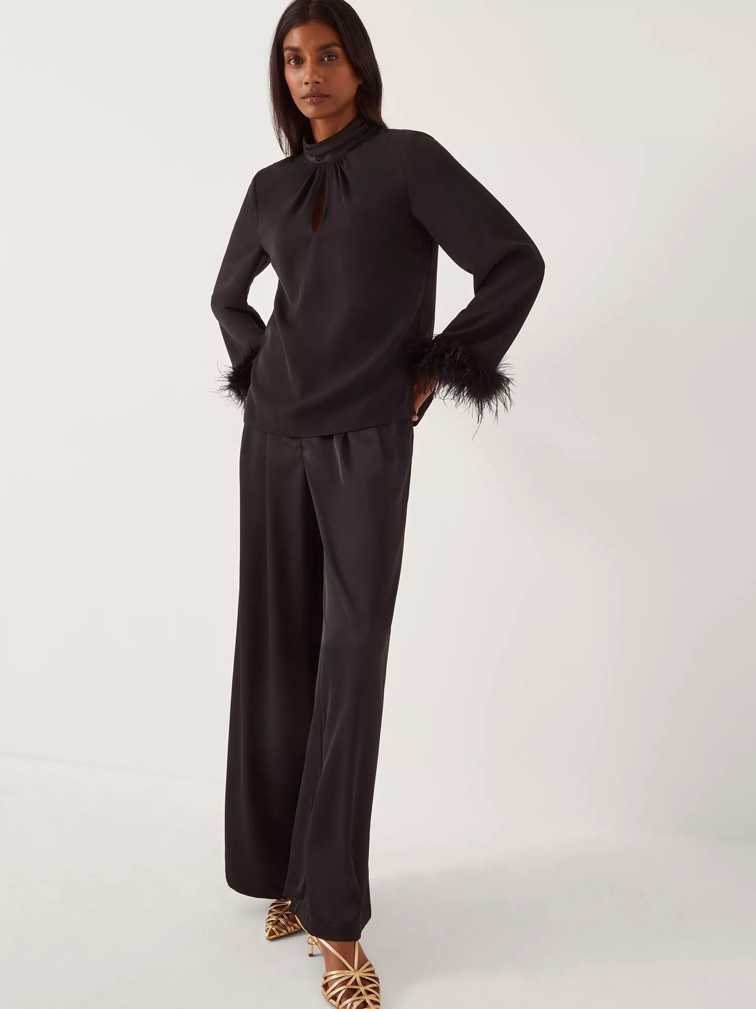An elevated blouse from Monsoon, featuring a high twist neck, regular-fit and long sleeves with feather trimmed cuffs. Perfectly polished for occasions filled with fun.