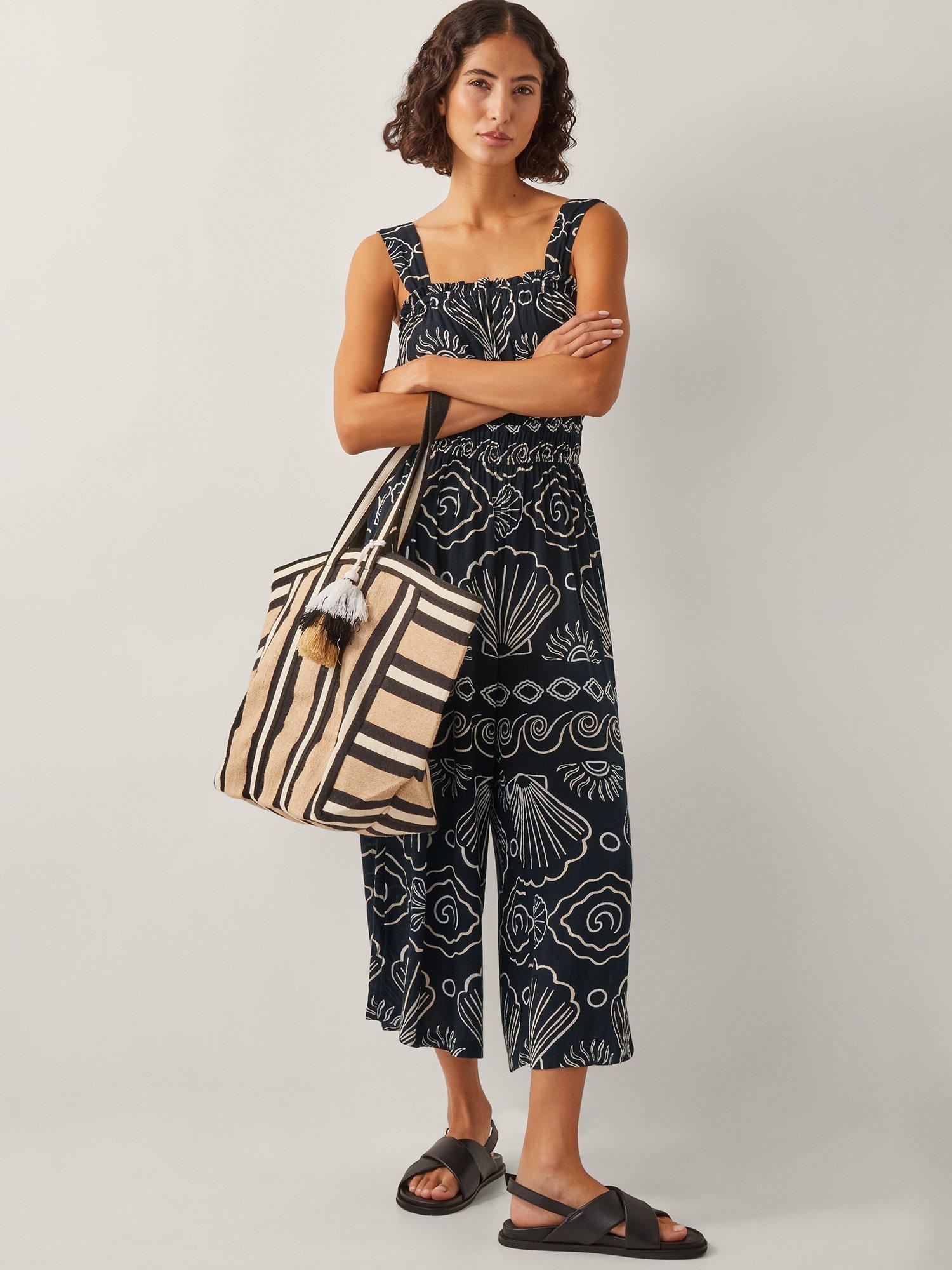 An easy pull-on-and-go outfit for all your summer adventures, this jumpsuit features a strappy bodice and cropped wide-leg hems. Decorated with scallop shells and wave motifs for the ultimate beachy finish.