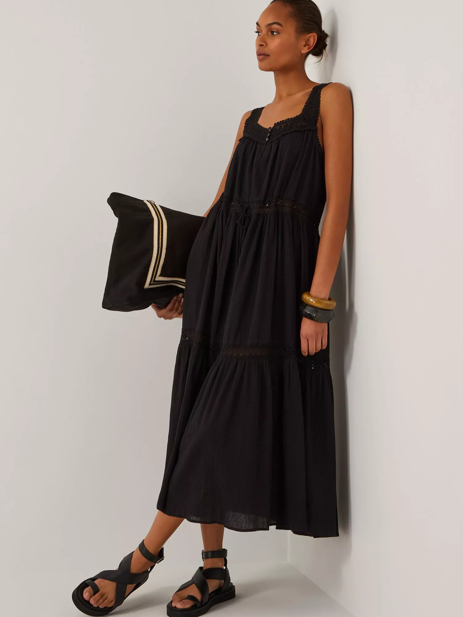 For this summer, next summer and all the summers to come. A timeless addition to your warm-weather wardrobe, this dress is made from lightweight cotton crepe with embroidered panels and a tiered midi-length hem. Finished with a drawstring waist.