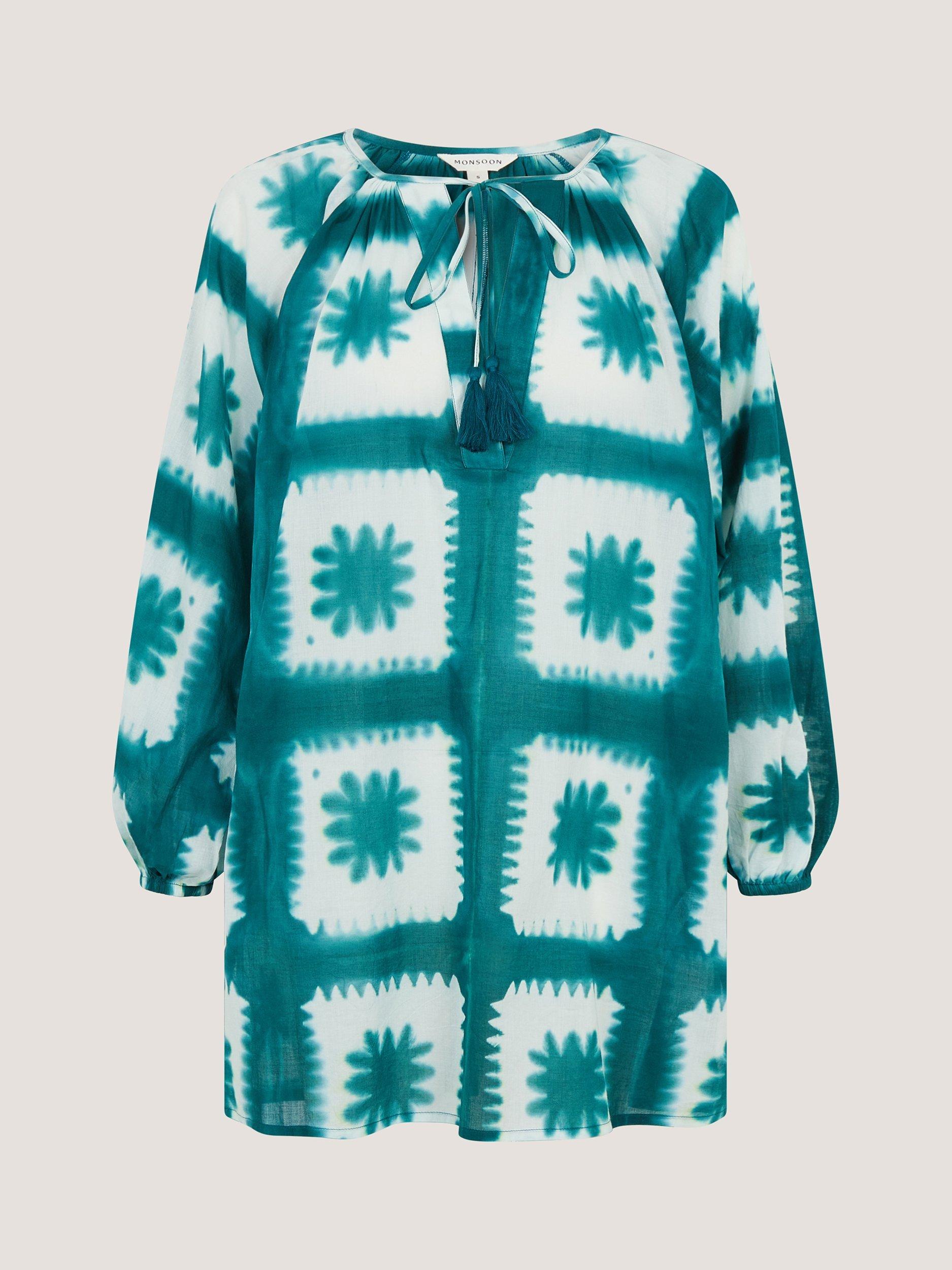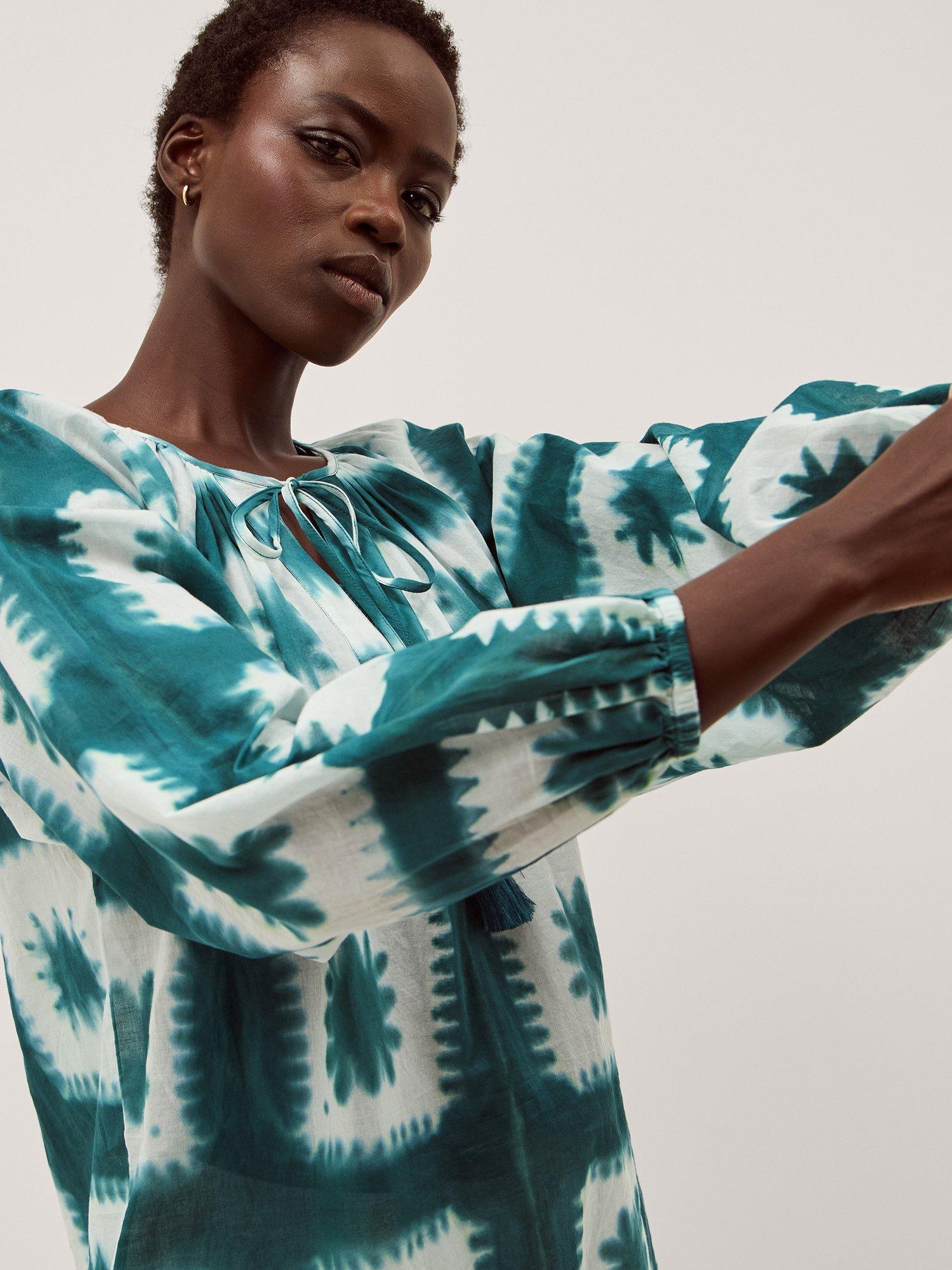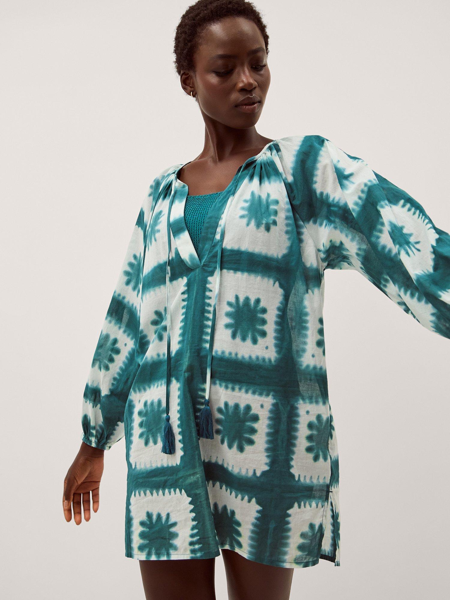 A tie-dye kaftan by Monsoon, designed for summer ease. Soft cotton keeps you comfortable and cool, while the tassel tie neck ensures laidback styling.