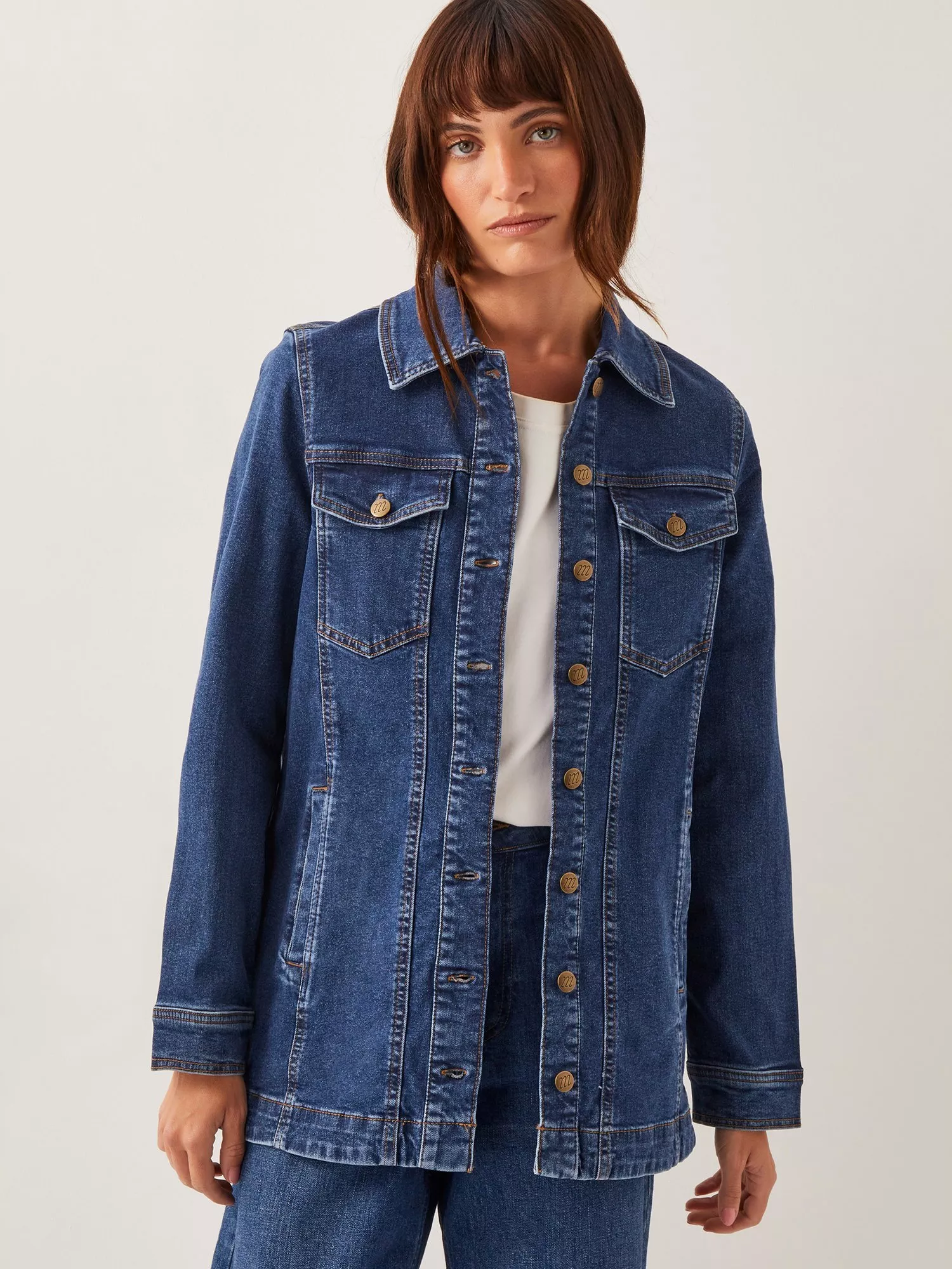 Carved with a neat collar neckline, a longline length and buttons through the front, this jacket from Monsoon is made from a soft cotton blended denim for breathable comfort that will stand the test of time.