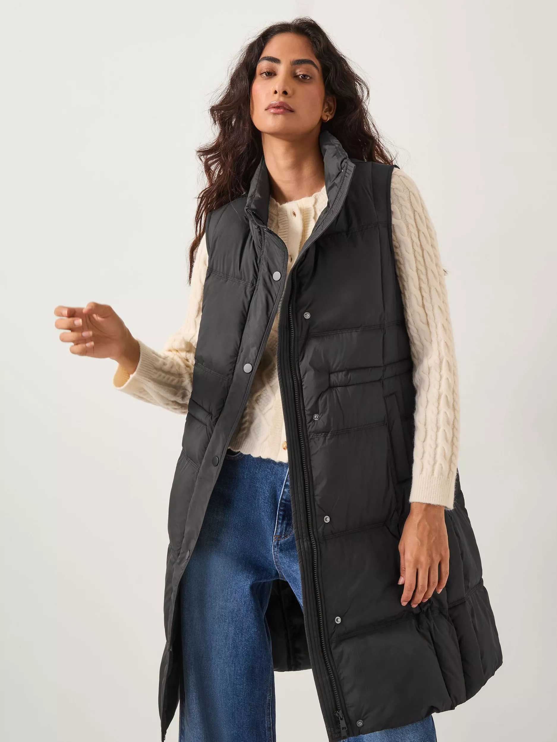 Locking in warmth without the bulk, this padded gilet from Monsoon is cut to a longer length for a flattering profile.
