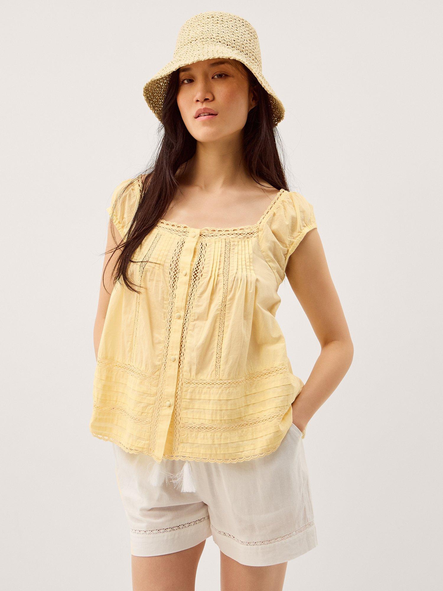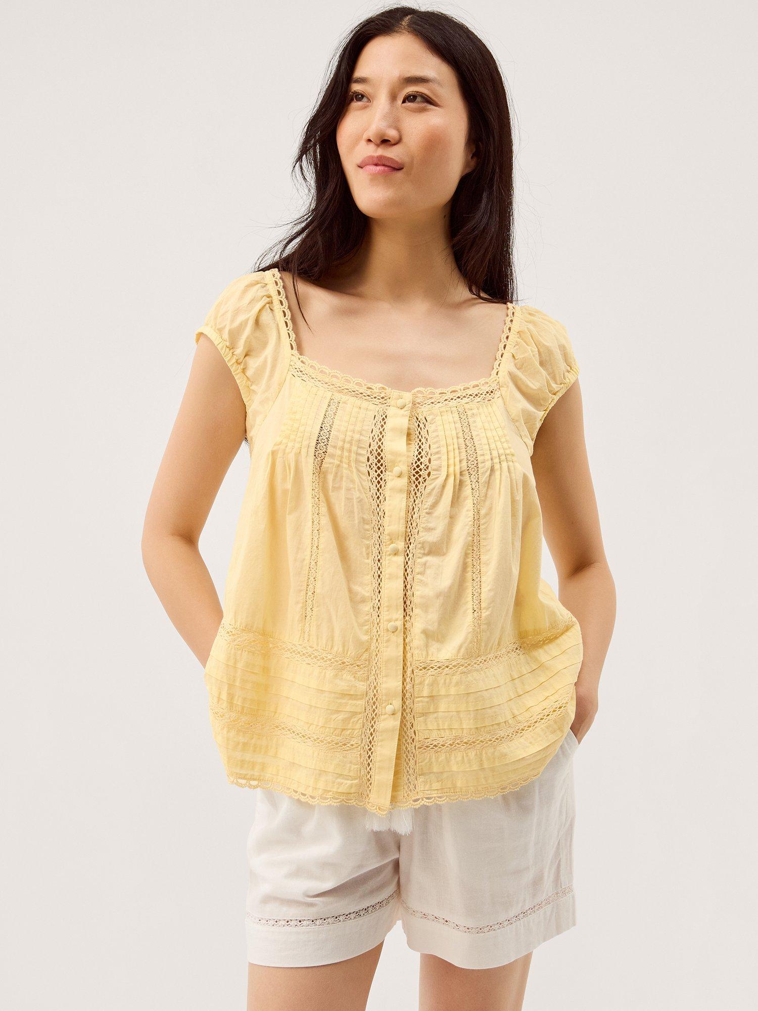 A blouse by Monsoon that's light and breathable in cotton. With a square neck and short sleeves, it comes in a mix-and-match ready plain colour. Effortless style for daily dressing.