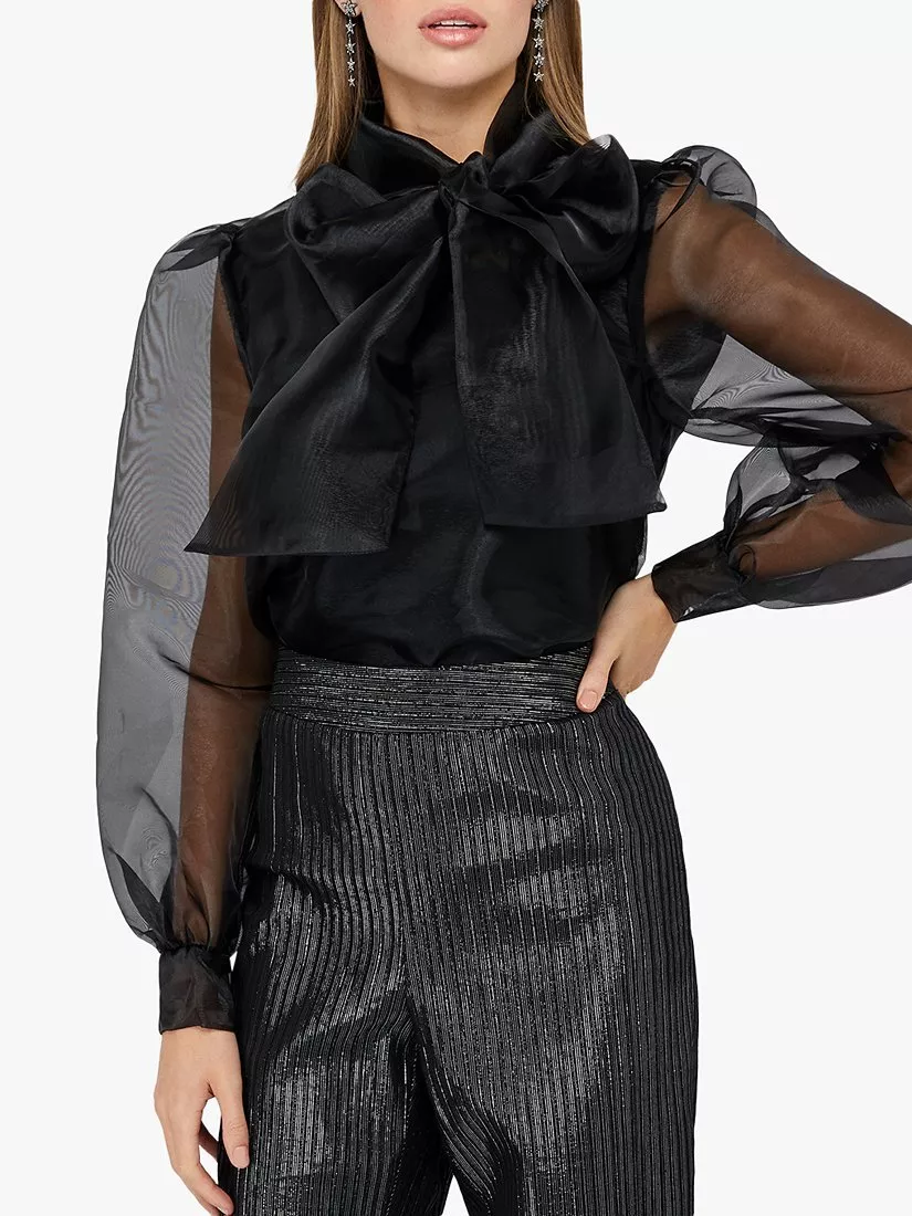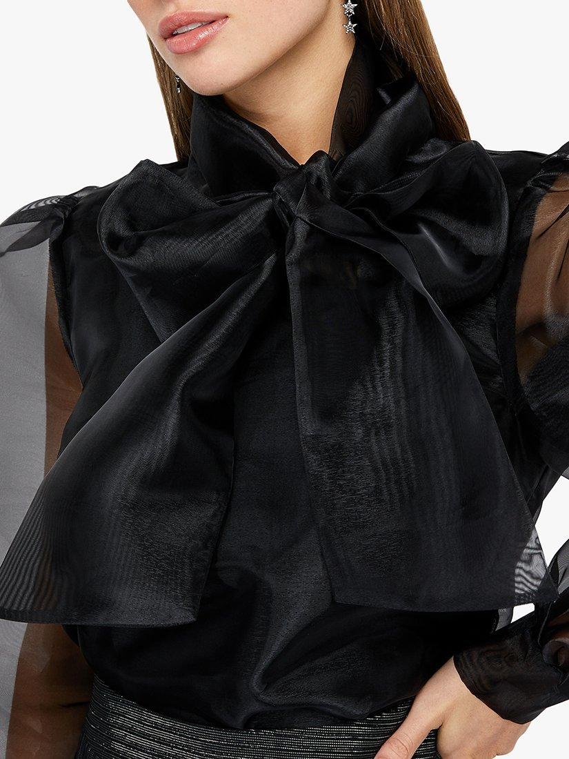A distinctive statement piece, the Oprah blouse from Monsoon is framed with a feminine tie neckline and voluminous puffed sleeves.